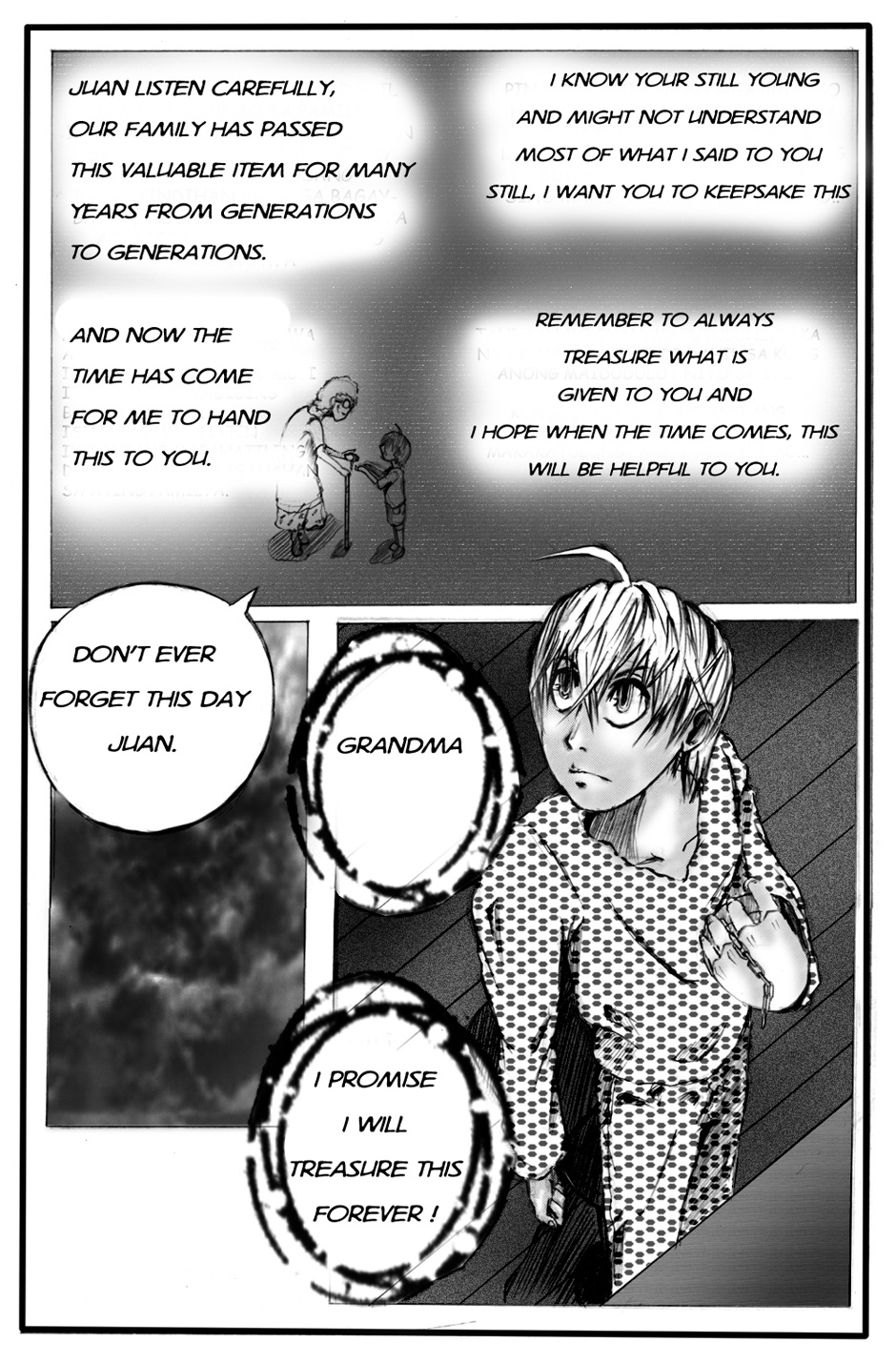 A one shot story of a young lazy boy who unknowingly possessed a strange antique item that is given to him by his grandmother will change his life forever.