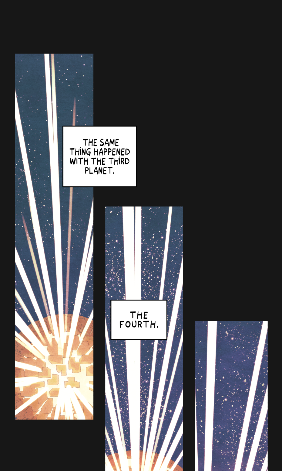Seven of the eight planets in a distant system are gone. All at the hands of a single mysterious figure. Little hope remains on the last planet, which awaits the same fate: to disappear without leaving any trace of its existence.