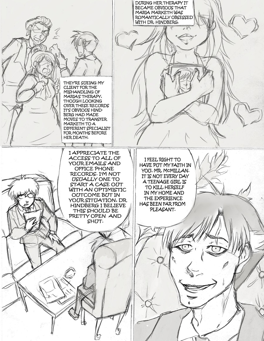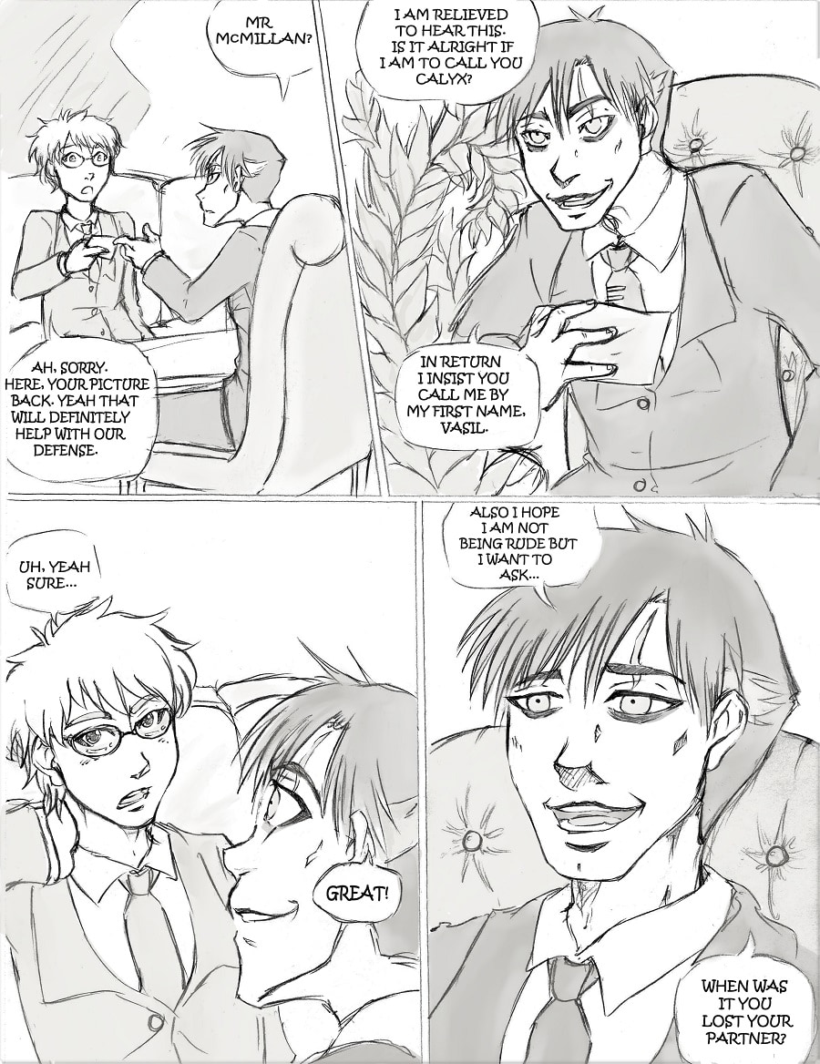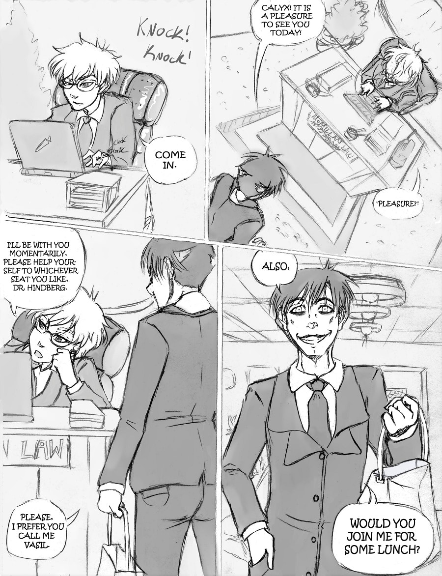 The case has enough going on as is, however handling Hindberg as a client proves to stir up past traumas in Calyx as he finds himself having more in common with the older widow than he could have ever guessed.