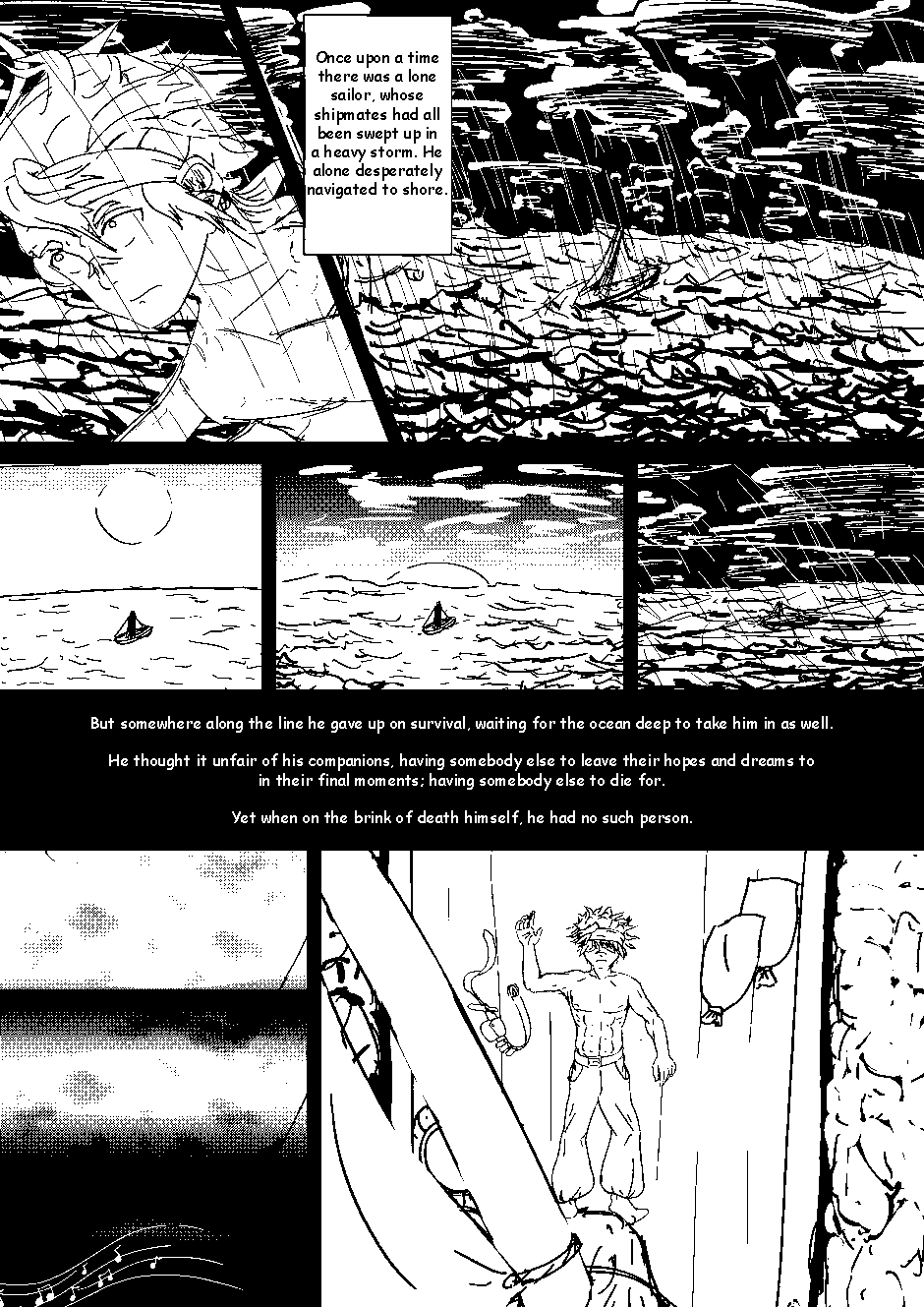 After losing his shipmates to a heavy storm, a lost sailor is left with the burdens of his comrades' hopes as he gives up on survival. With nothing more to lose, he follows a siren's song in search of his final salvation.
