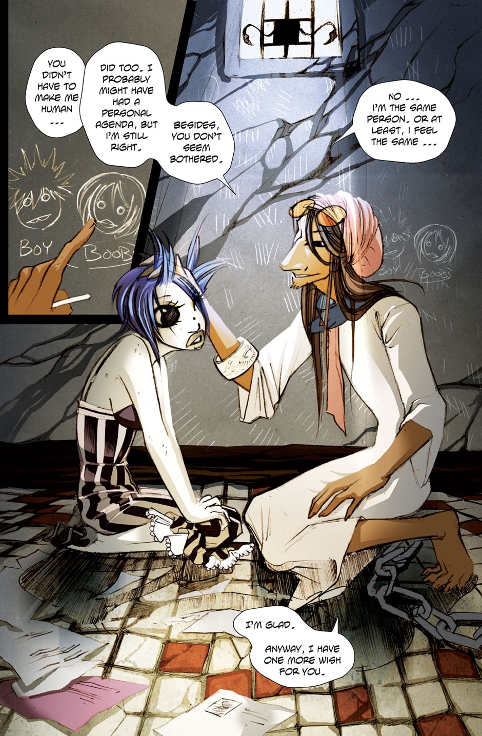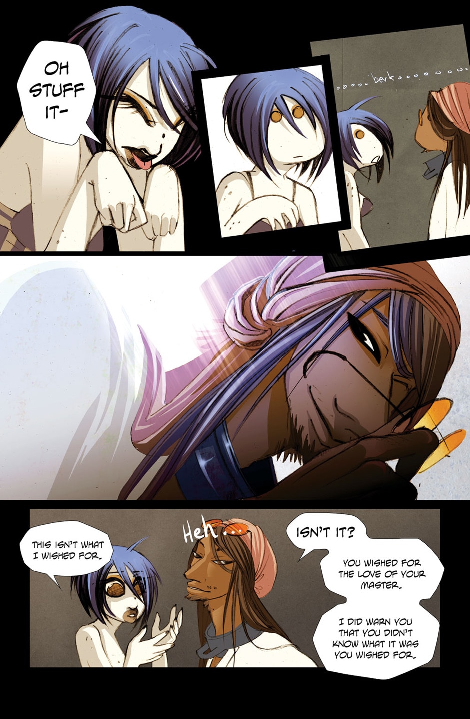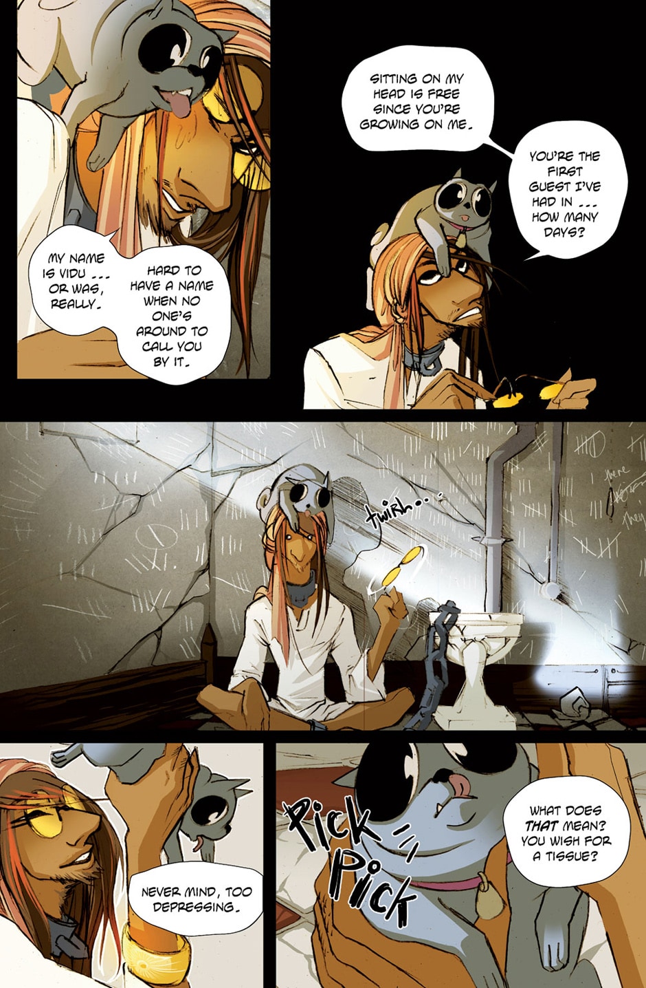 I’ve wished to go back to these characters, Vidu and Skittlez (and Sedna, from future chapters) but it’s never been financially possible. It’s a really sad acceptance I’ve had to make. Also though I don’t want these pages to just vanish completely. I want to keep them somewhere. C: Maybe so I can look back on them and feel like my art and storytelling have improved. XD (aha I had to cover some of the art here with hand I am so appalled with myself that I drew this ugly thing. BUT it did serve a purpose, for me to learn and get better!)