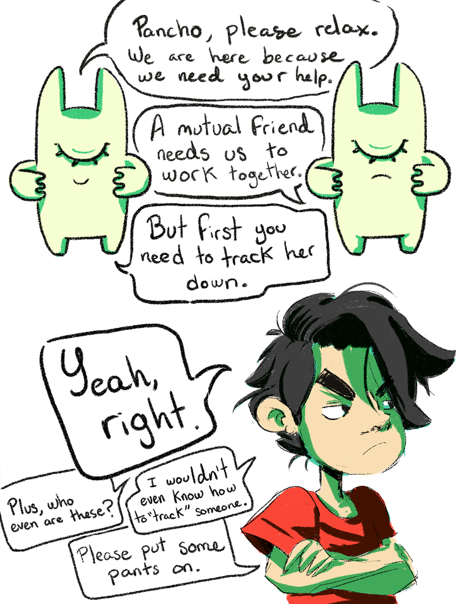 Pancho is abducted by a mysterious duo of aliens that inform him of an important mission.