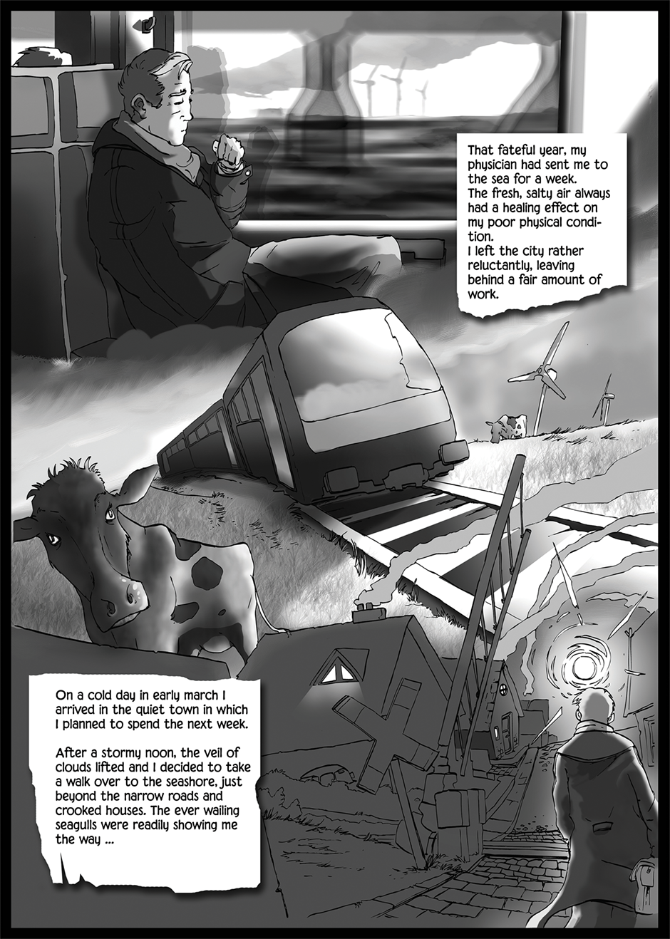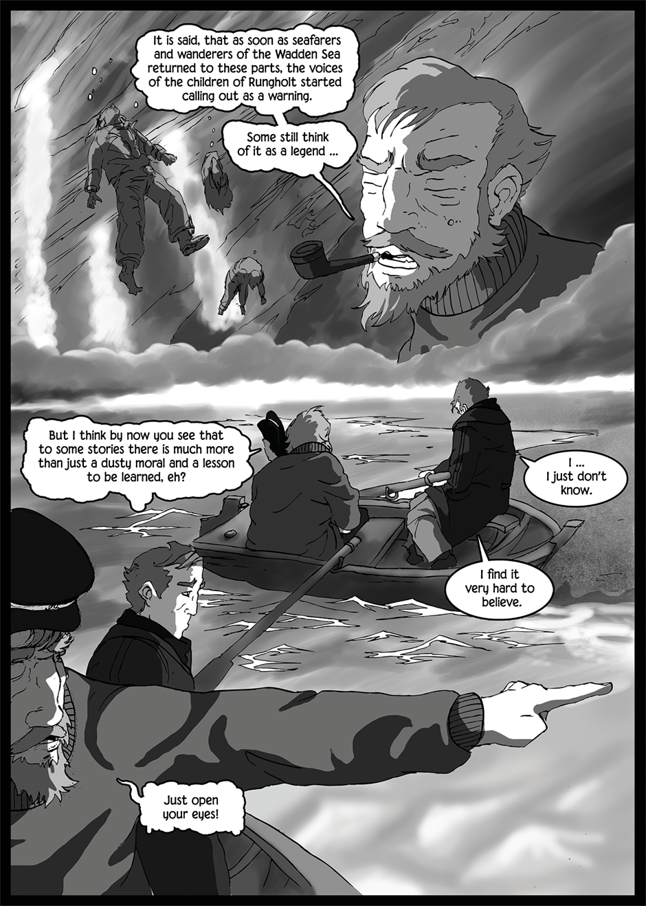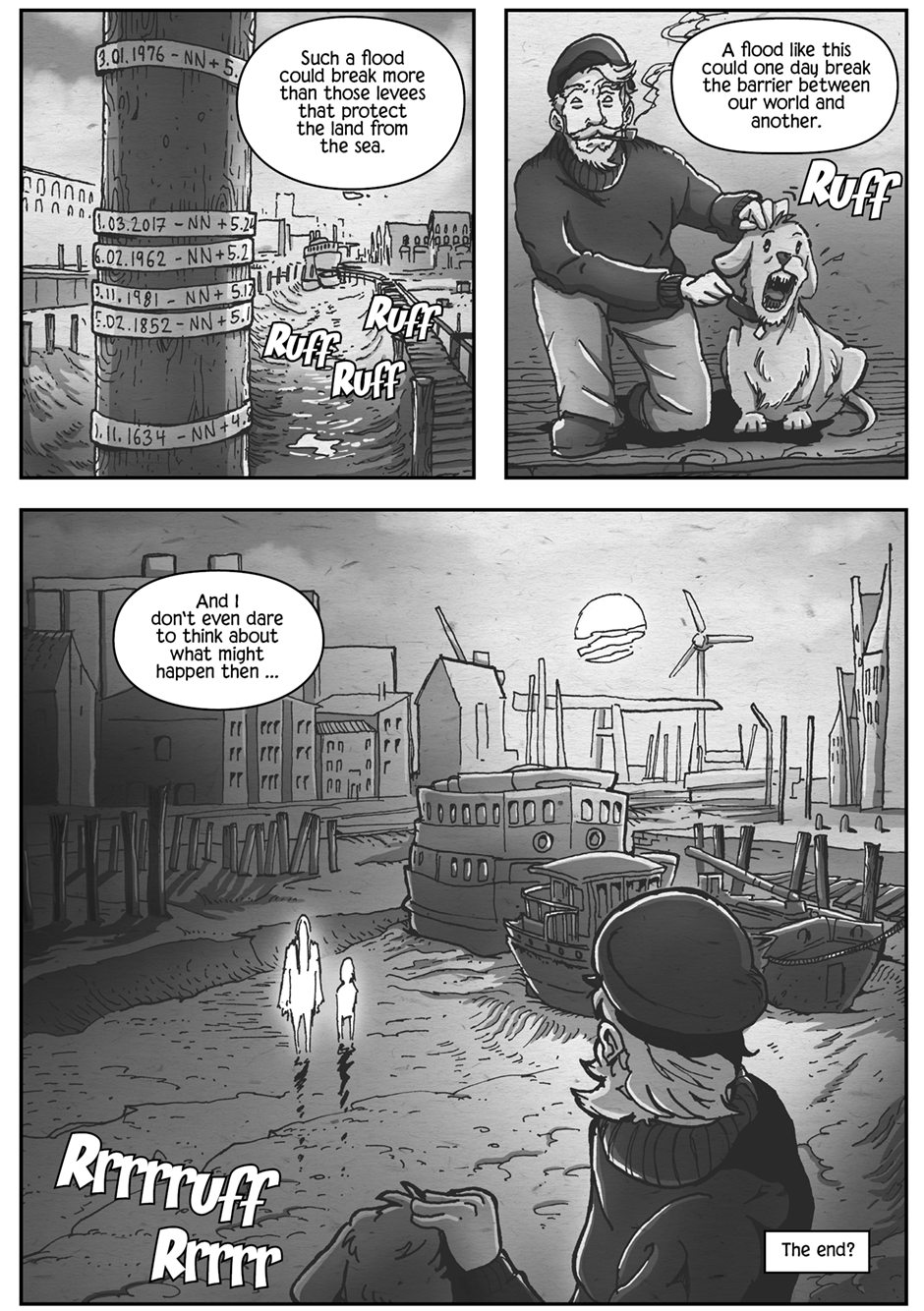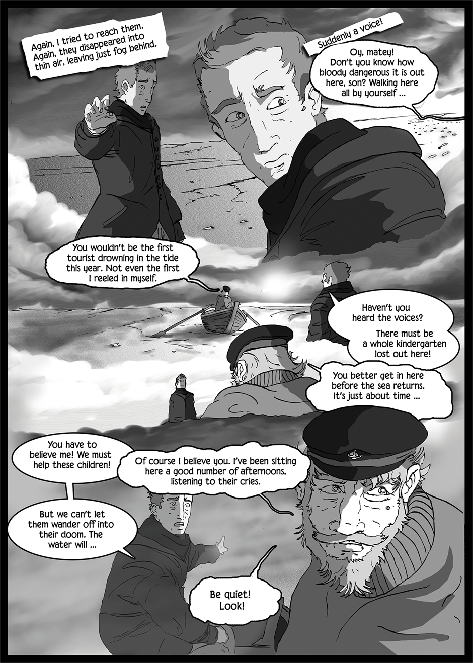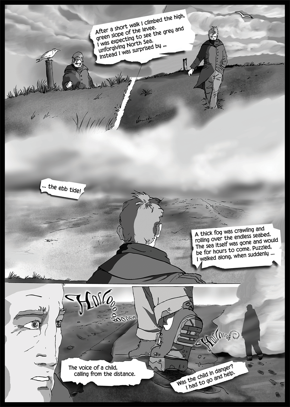 A lonely wanderer enounters fougbound phantoms in the vastness of the wadden sea. An omen for things to come?
