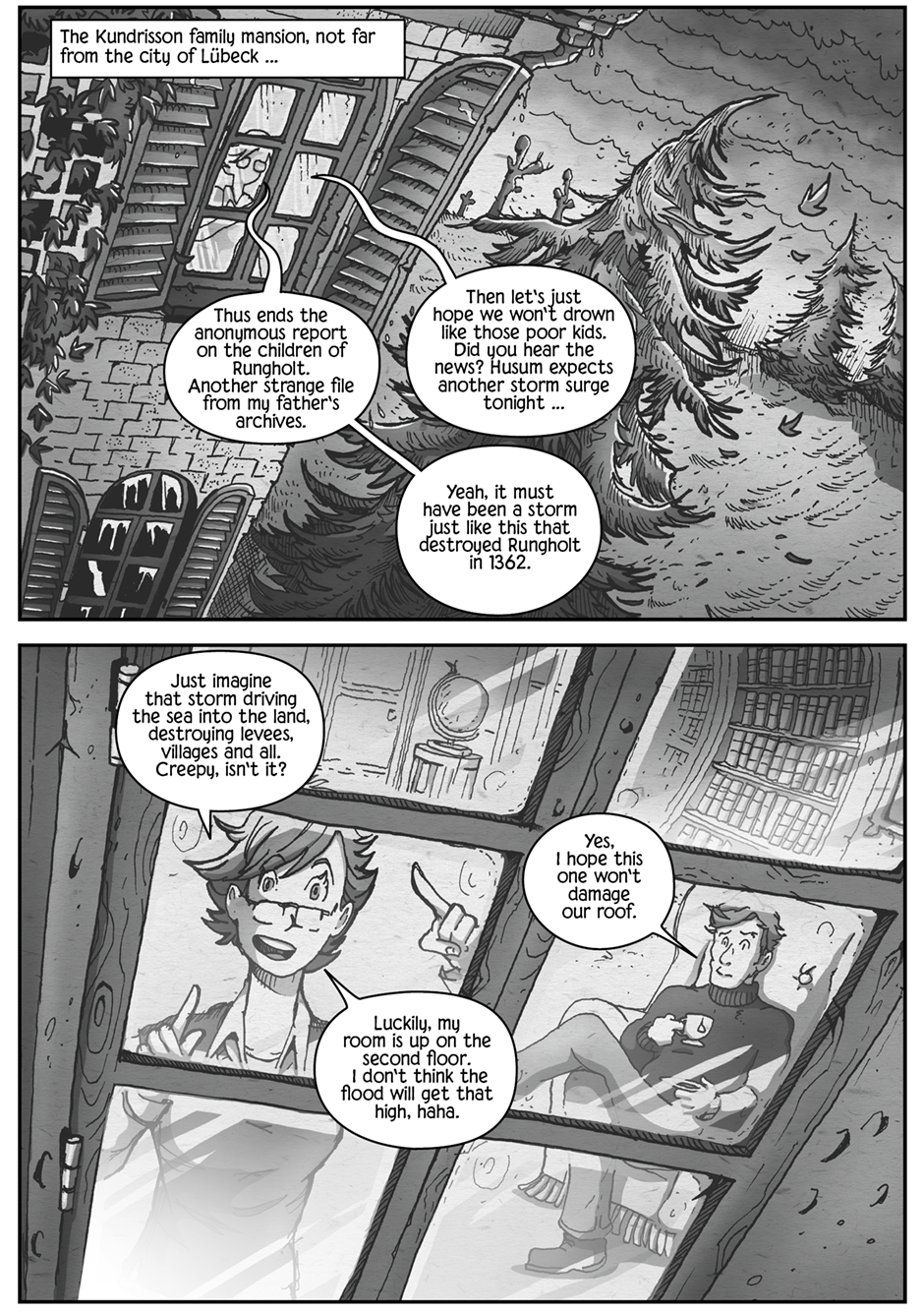 Jan Storm and Kris Kundrisson are partners in a rather peculiar profession. From the dusty bowels of haunted houses to the wild waves of the north sea or even among us regular folk in the cities and villages they track the weird and unseen forces that go bump in the night. Led by strange rumors and fearful reports of witnesses they find themselves at the heel of supernatural powers and horrifiying creatures. It is these adventures we chronicle in "Torch and Tempest".