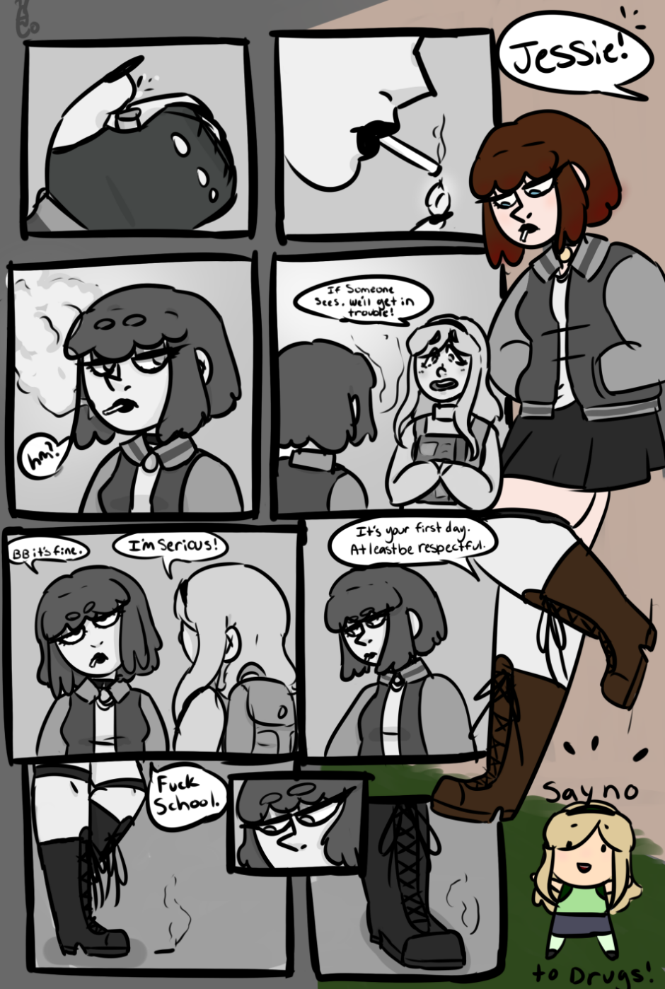 #goth #black_and_white #cute #school #Mature_Content #smoking #cursing #gay #big_gay #thicc_gorls #Highschool #drama