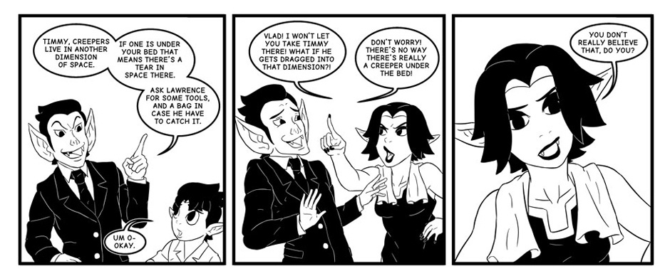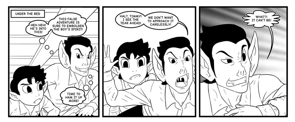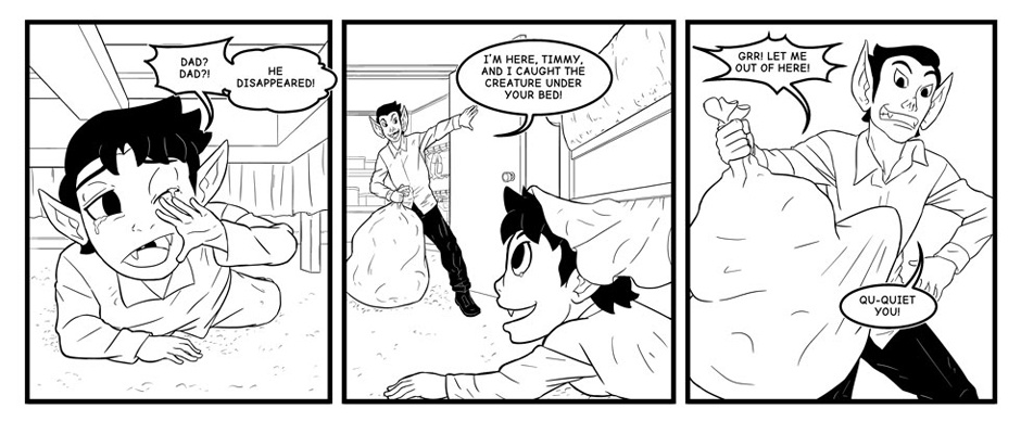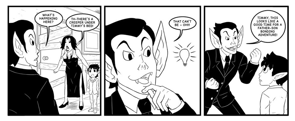 There's a monster under young Timmy's bed! He and his father investigate.