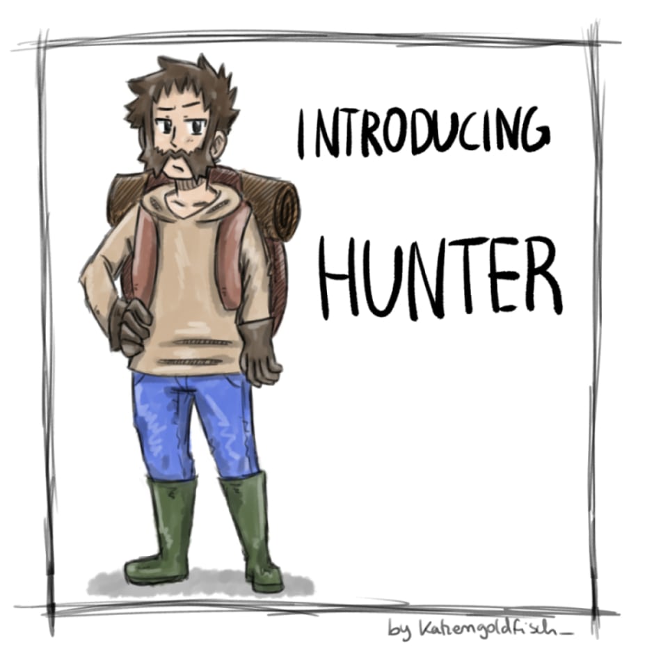 This is Hunter. A very strict man. He is in his 30's and also a Hunter. His philosophy regarding treasures is that they must serve a purpose: "If you have found something, you must ask yourself is it useful?". He acts like a father to Treasure, even if he takes his time to accept that he cares a lot about him. He's also one of Sells best suppliers, giving Sell valuable treasures in exchange for money/caps.