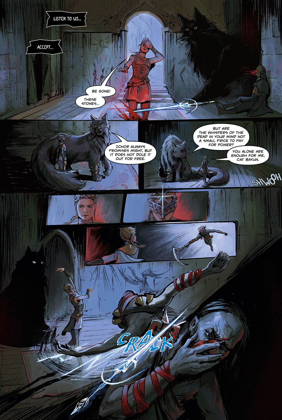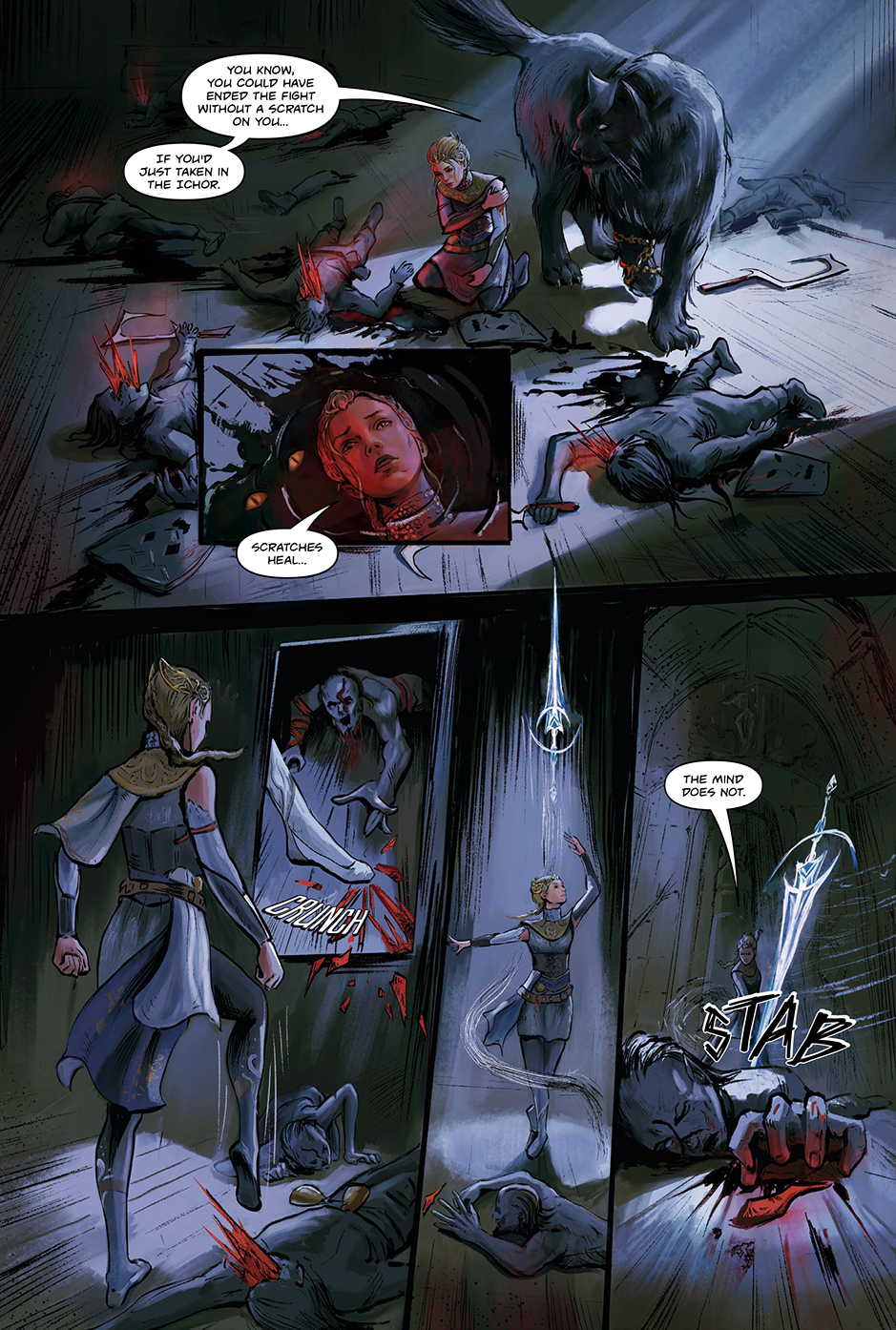 The comic highlights key themes of TSAREVNA: the temptation of power and the cost of vengeance.