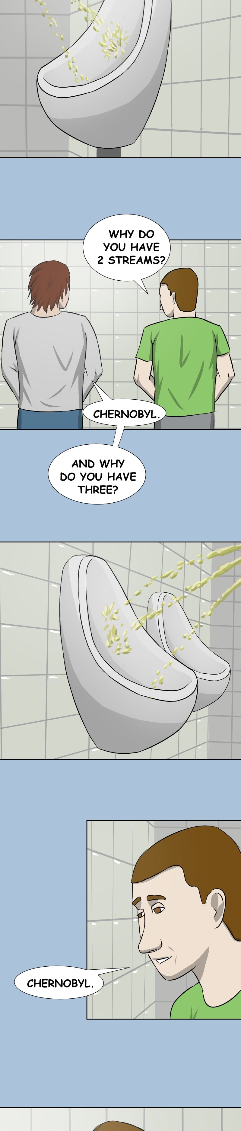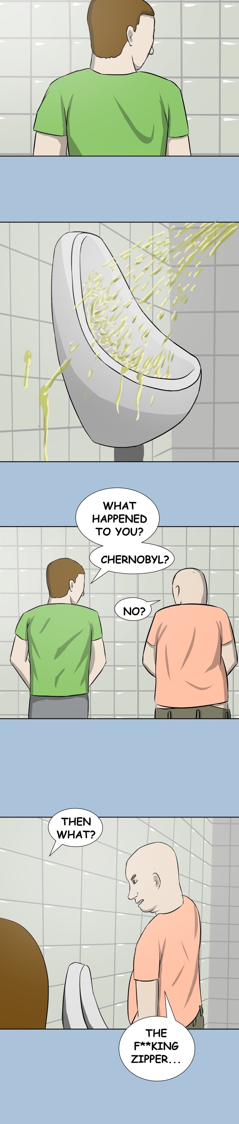 Normal conversation in a man's toilet