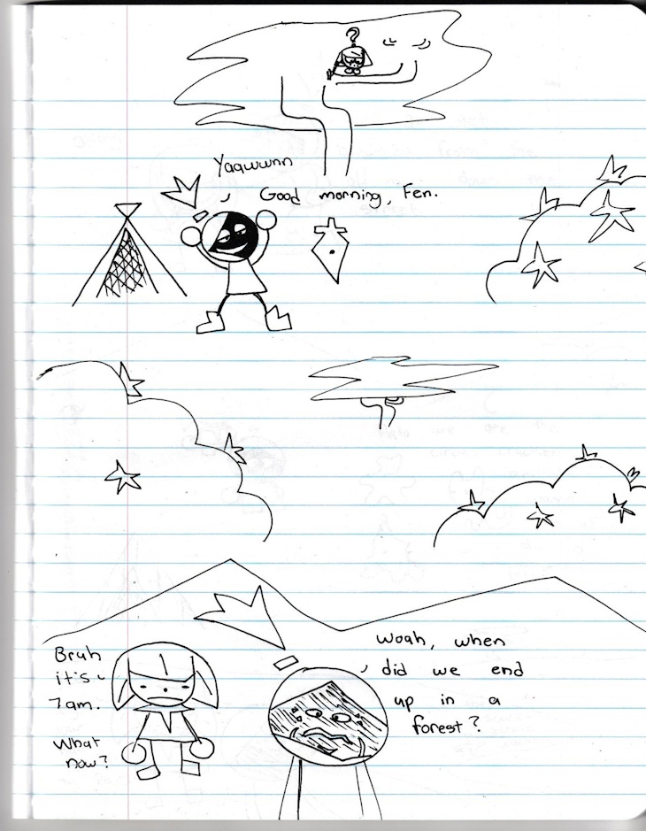 A knight and a mage go awaken in an endless forest and meet a few kinda spooky ghosts. This was a Valentines' Day gift for my girlfriend in 2026.