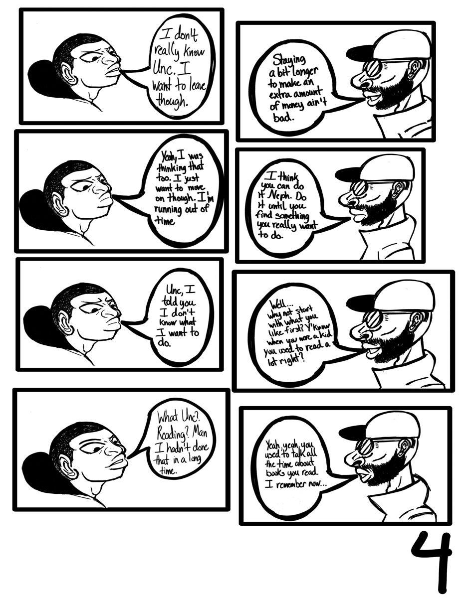 A conversation between an uncle and his nephew. The nephew is having a hard time trying to figure out his problems with being inadequate and feeling left behind. His uncle visits his nephew and they just talk it out, helping the nephew figure his way out of whatever is bothering him so much.