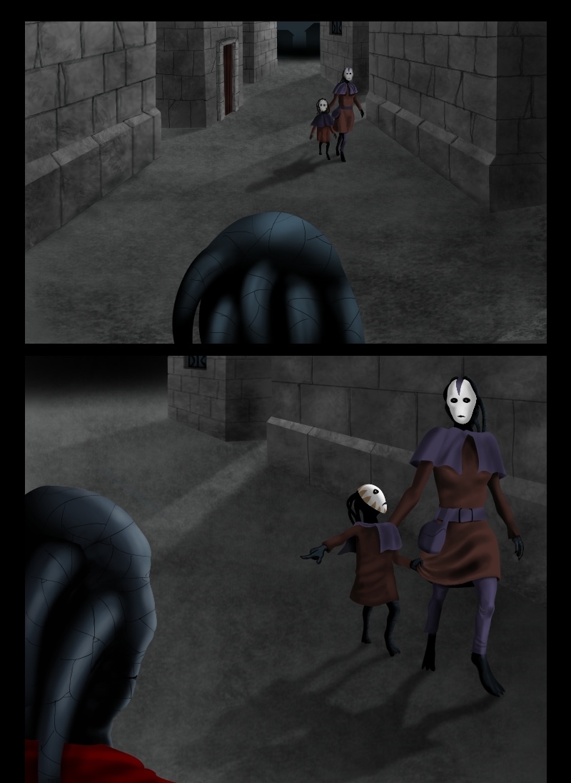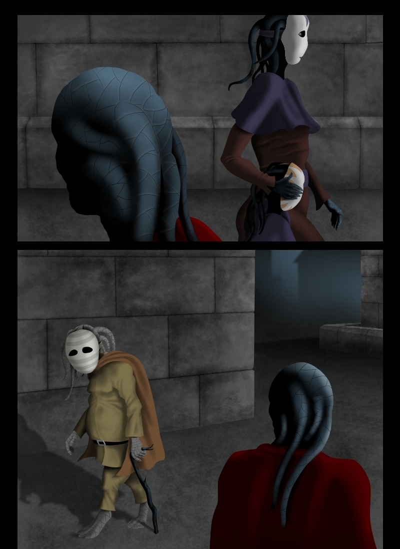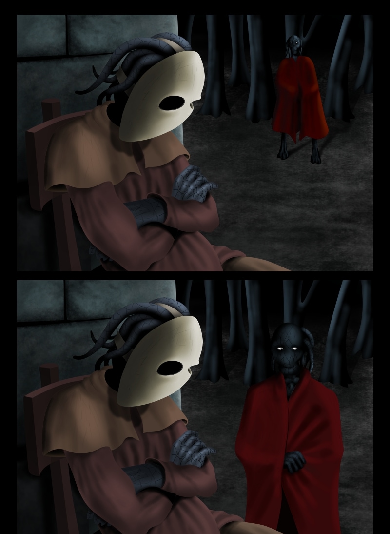 The one without a mask, I'm intrigued. (good job with the textures an lighting.) *-*