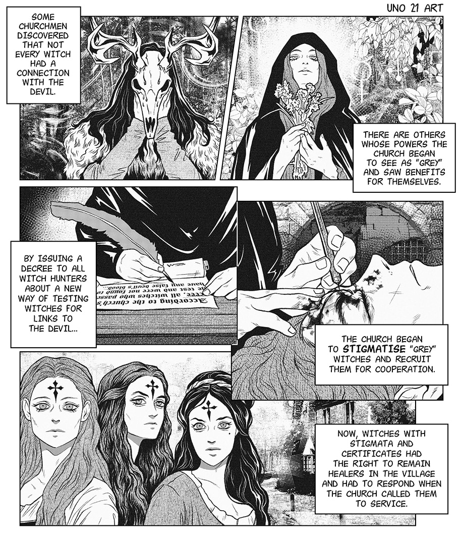 The Church found that not every witch had a connection with the devil. There are others whose powers the Church began to regard as 'grey' and saw the benefits for themselves. The Church began to stigmatise "grey" witches and recruit them for cooperation.