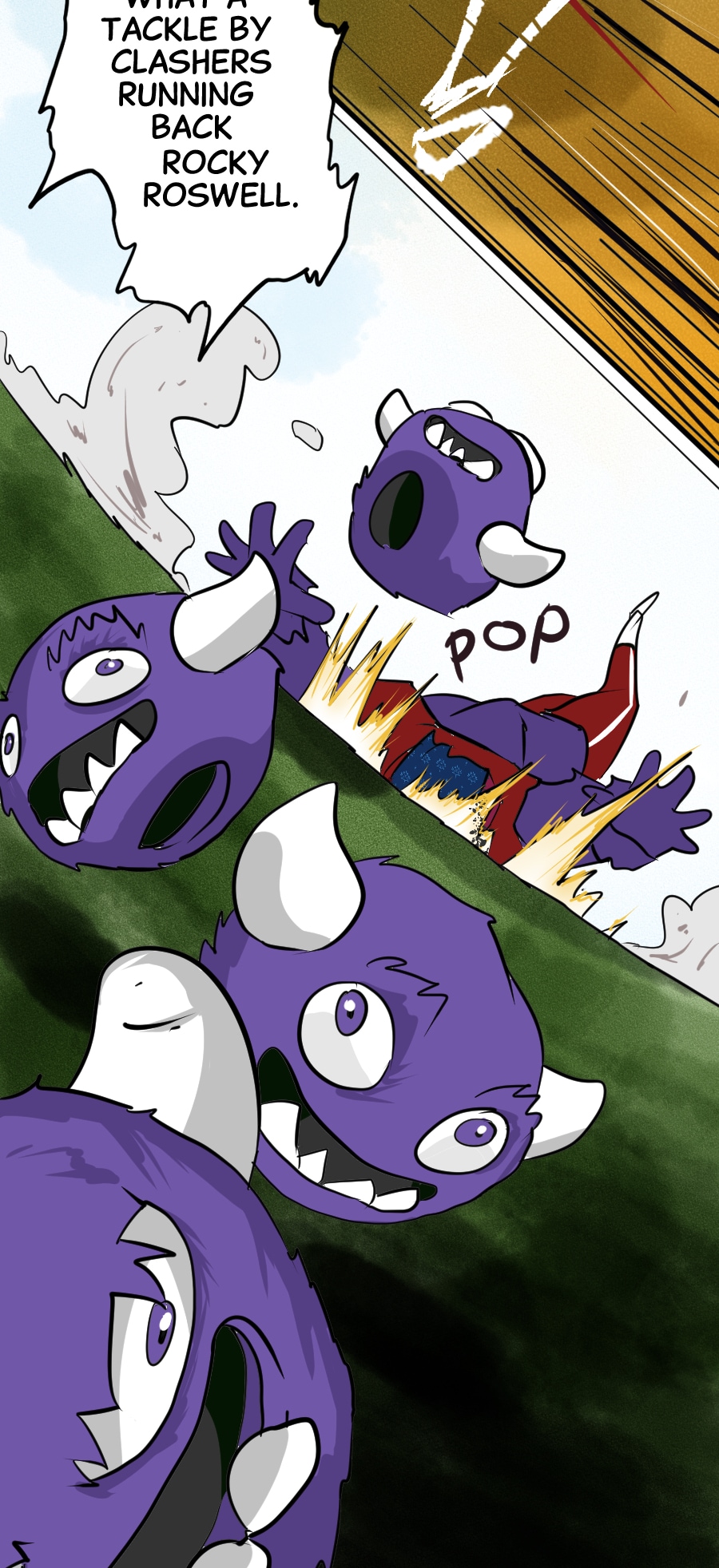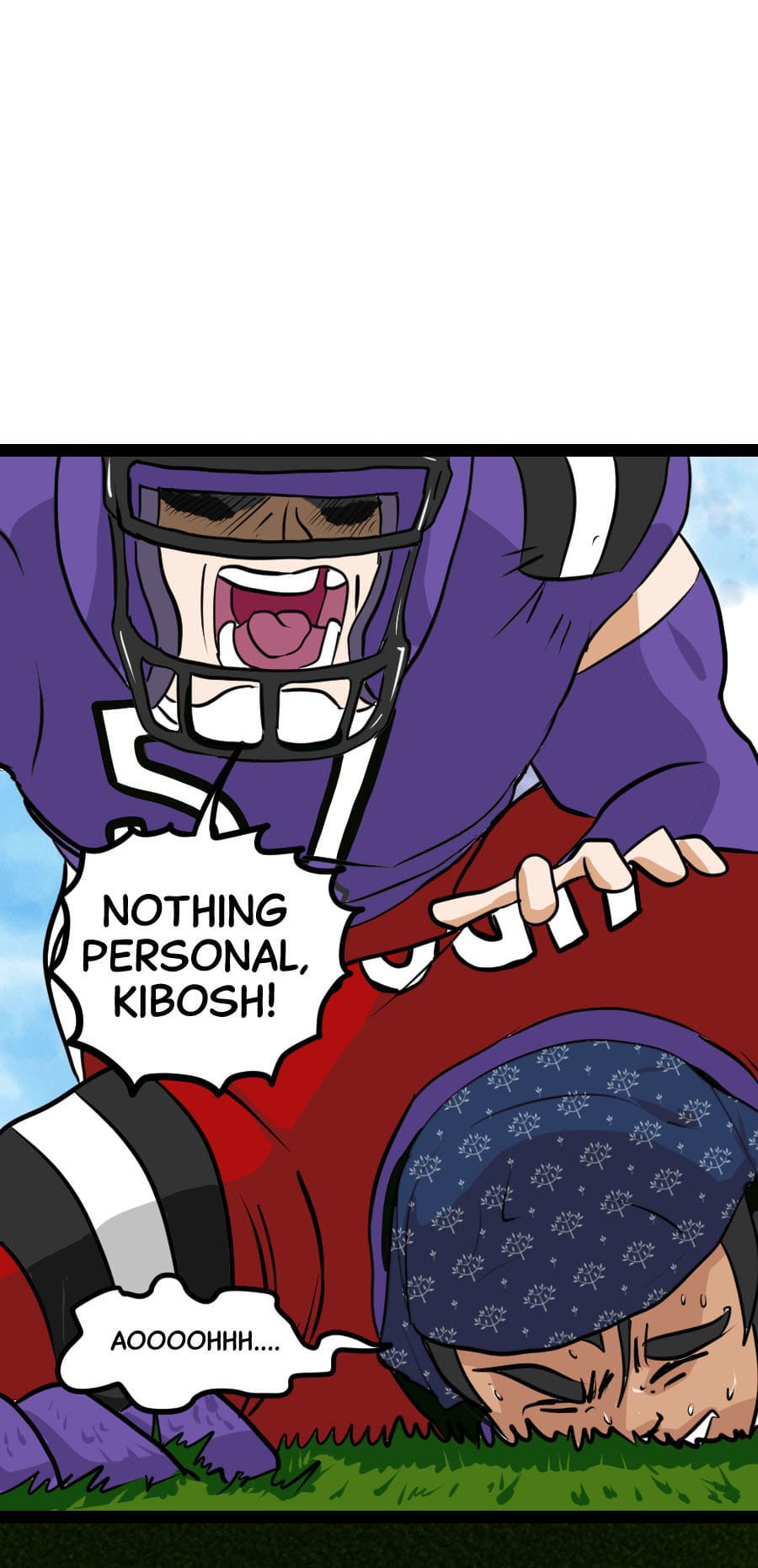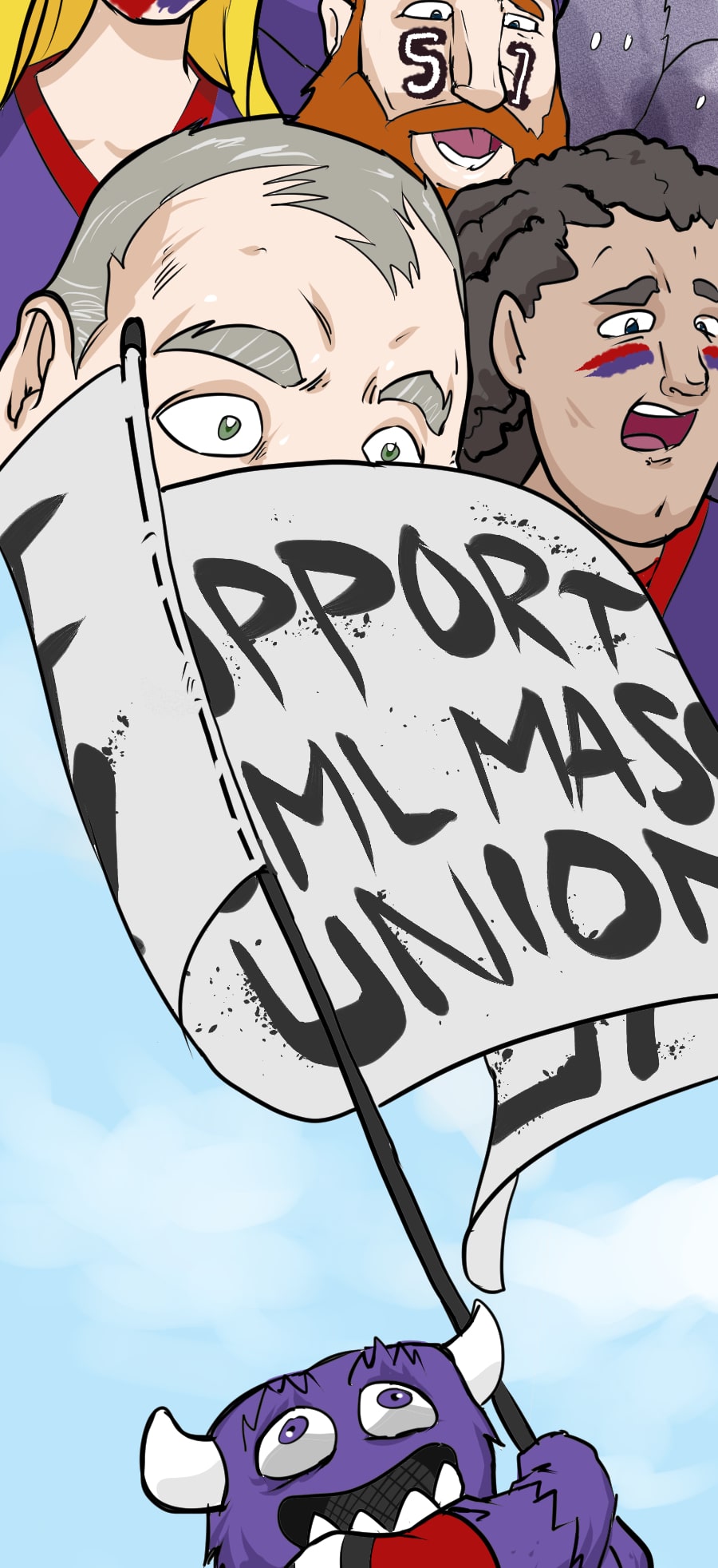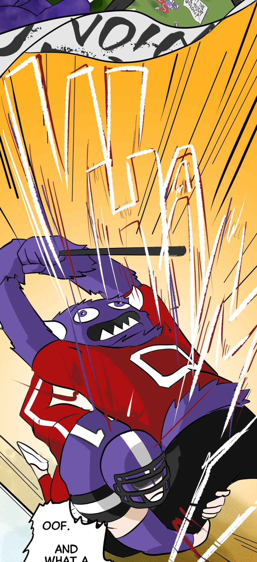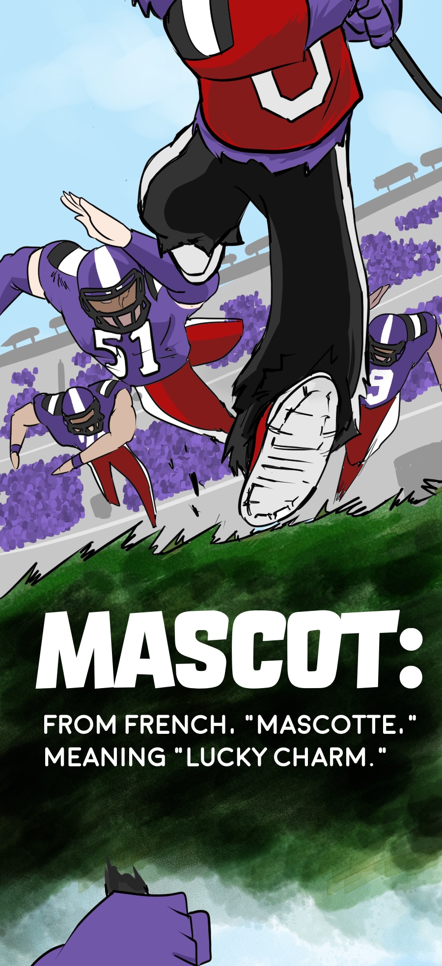 Roo's gig as wacky mascot "Kibosh" might be fun, but it’s riddled with hazards: rowdy fans, unpaid hours, dangerous stunts, and no benefits! Fed up, Roo organizes a mascot union and immediately draws the wrath of his corporate employers. Witness his journey from exploited clown to workplace activist in this Shonen-style dramedy. Even the most absurd of jobs demands dignity, and especially healthcare. Episodes every 7-10 days!