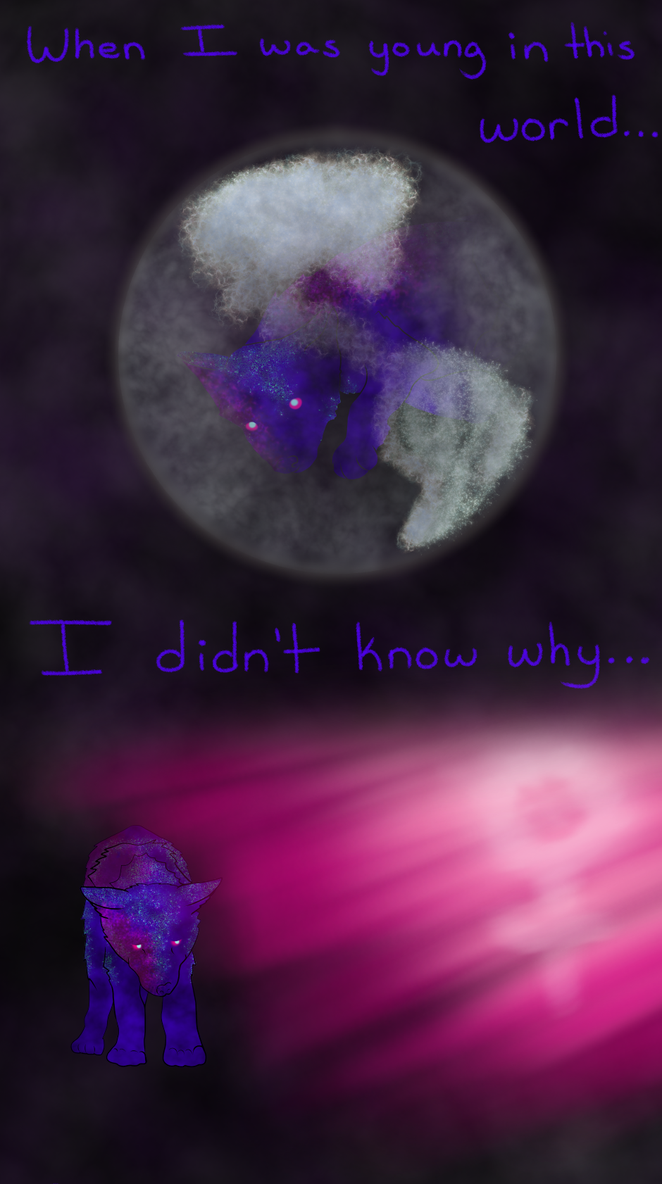 A wolf and a crow just taking it day by day in the universe.