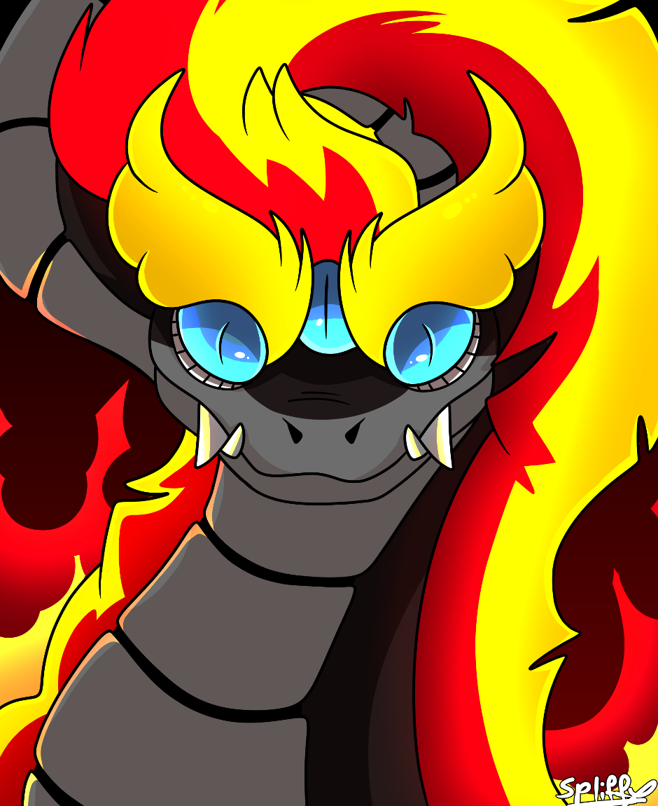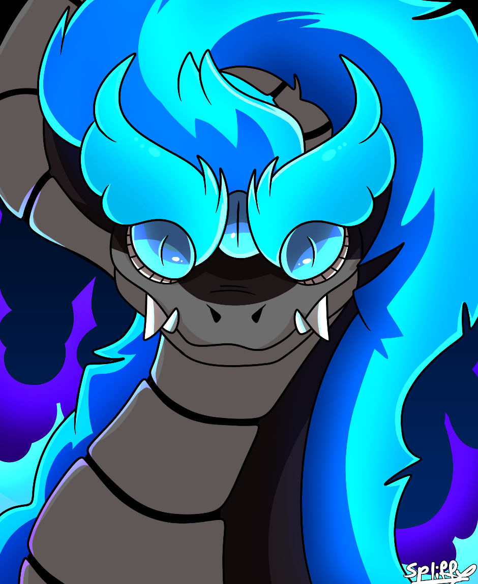 One of the gods in uprising, a giant fire snake named Basalt Fani :> He has two different variants of the colour of his flames.