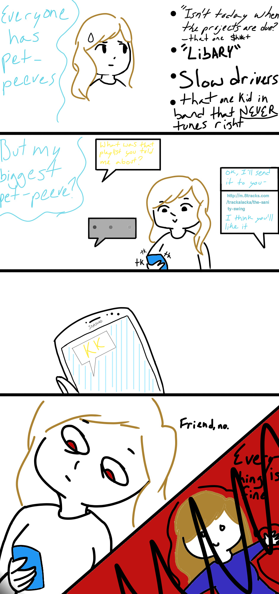 It's the little things in life that count, but replying "kk" is not one of them. The link in this is actually m.8tracks.com/trackalacka/th… an 8tracks for my fav webcomic The Sanity Circus. (It's even on Tapastic :D)