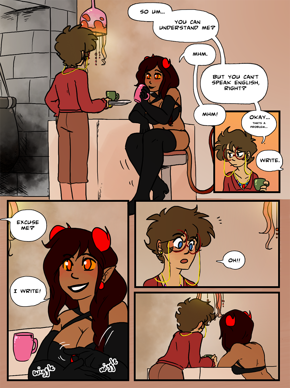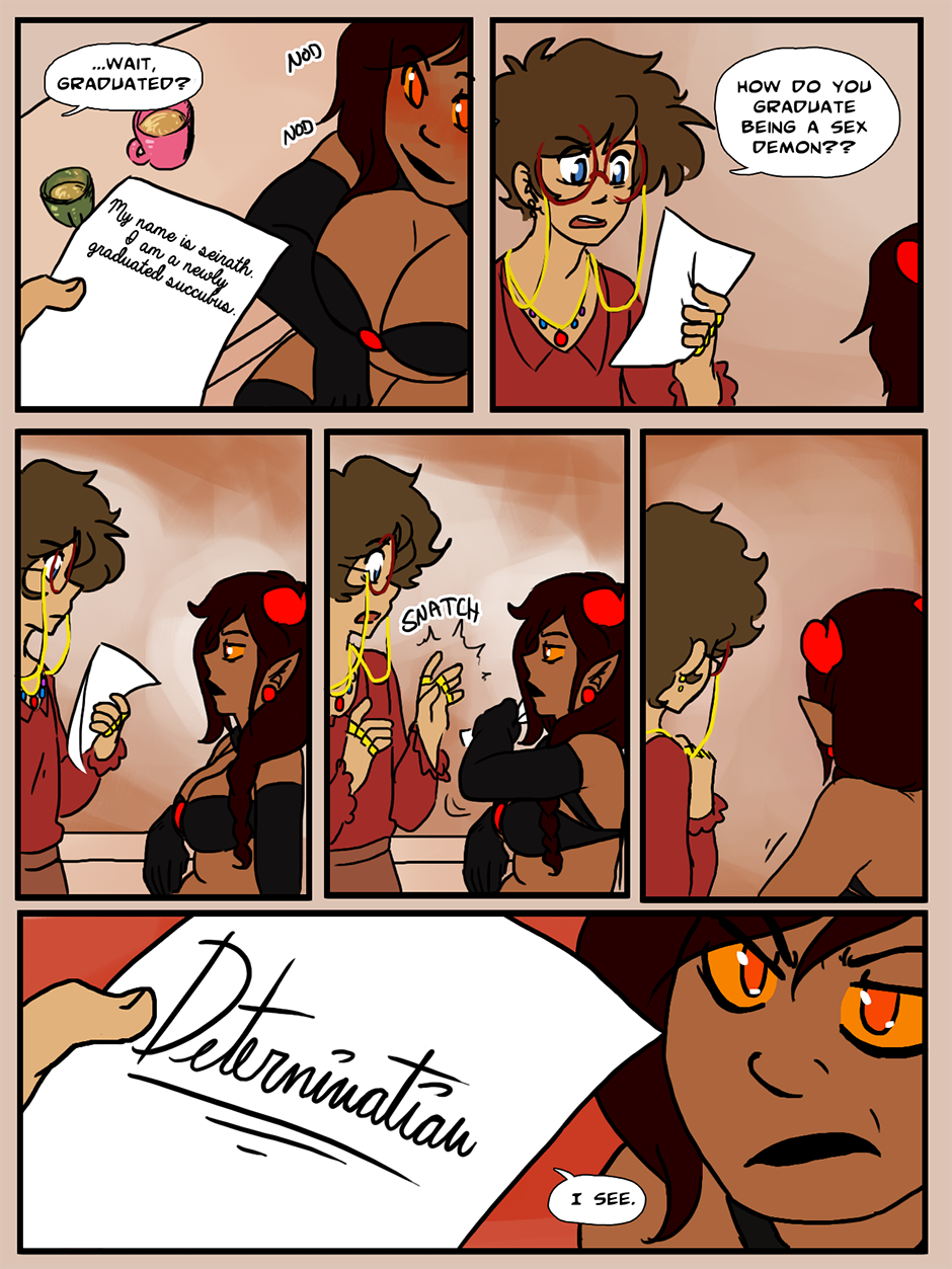 hi siggy! been a fan for a while now, also I cant help but notice it lookislike Seth (cant Remember how to spell her name ;~;) in the first page of the prolog (when she has the glowing around her) that the jewel on her top was glowing too, but from the side angle it looked like her nipple was glowing also xD
