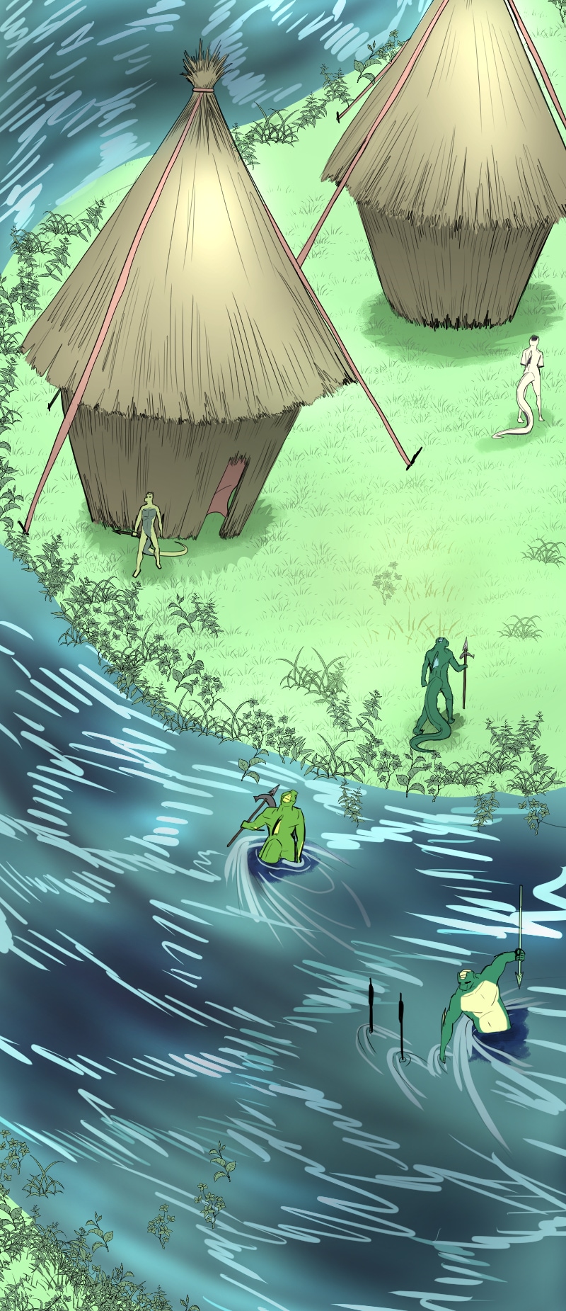 When a snakelike tribe ran short of resources they moved near another reptilian tribe. However this intoxicates the reptilians because of the serpent's infectious nature. Dhaara the snake leader fully believes that negotiation is not possible...at least not safely which only works to elevate the tension between the tribes. Now the conflict between each of the reptile races will break out into a war.