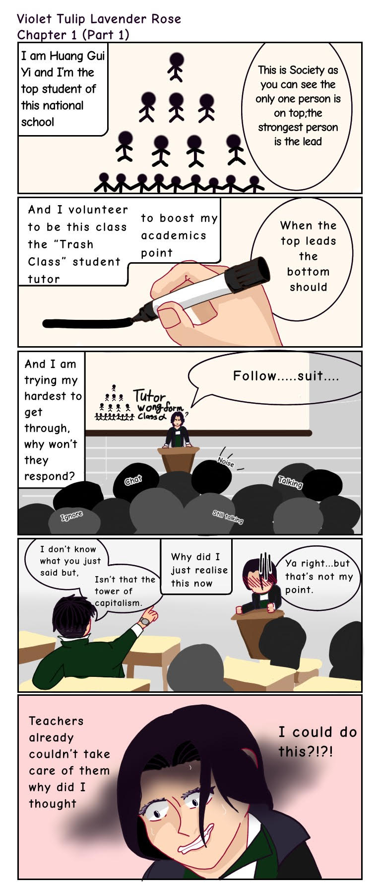 The last year of high school, final exam coming what would happen to the top student Gui YI? well all I can say is that her mundane life turns upside-down when she was not so forced to tutor the famous "Trash Class" students. In the garden of flowers, she picks out a Violet Tulip and Lavender for her top student. (please take this description with a grain of salt cause I might change some detail along the way)
