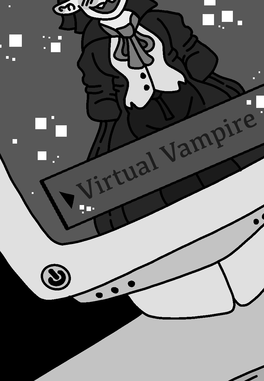 A dark and stormy night is the perfect time for a dashing vampire to make an appearance. Unfortunately, vampires only exist within the fictional realms of stories, legend, and in this case, a video game. Luckily for Morgan, an avid vampire romantic, this storm with give them the opportunity to get closer with their favorite undead virtual love interest, Adria!