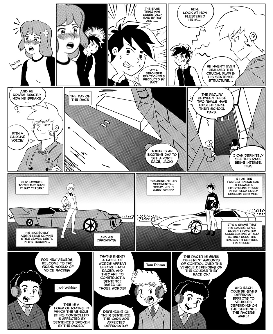 This is a form of racing in which the vehicle being controlled is affected by sentences spoken by the racer!