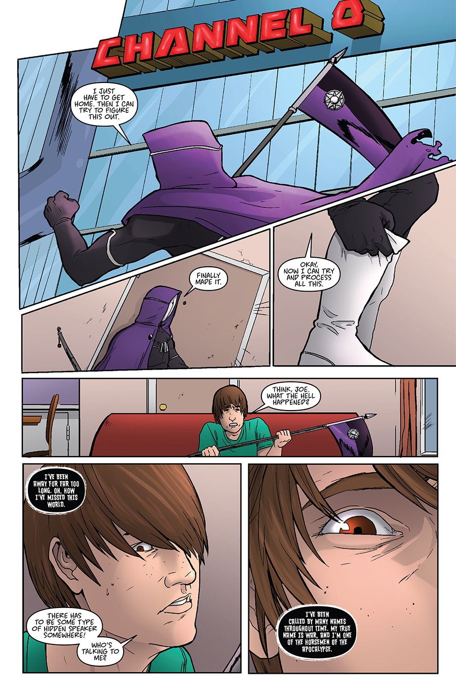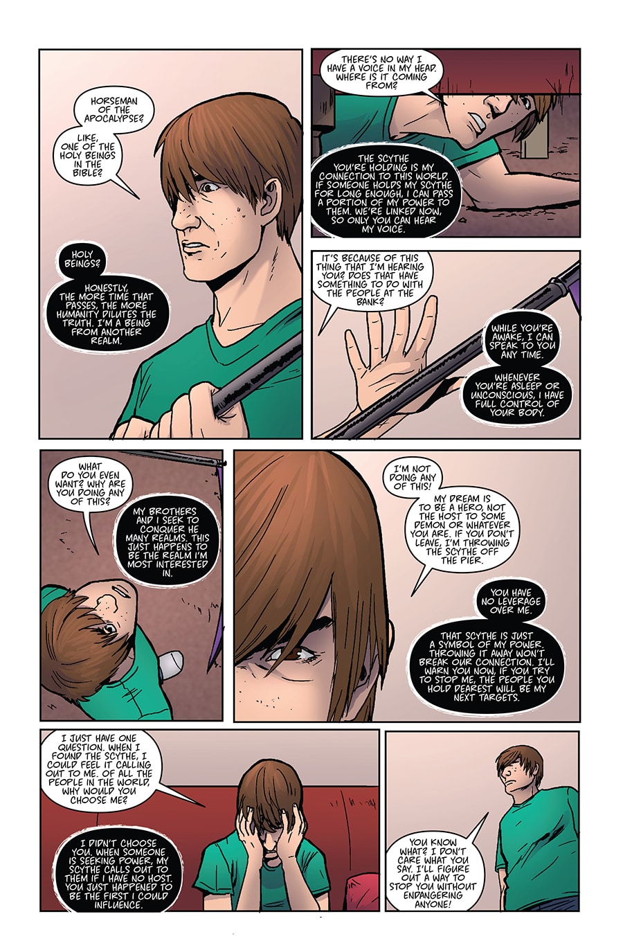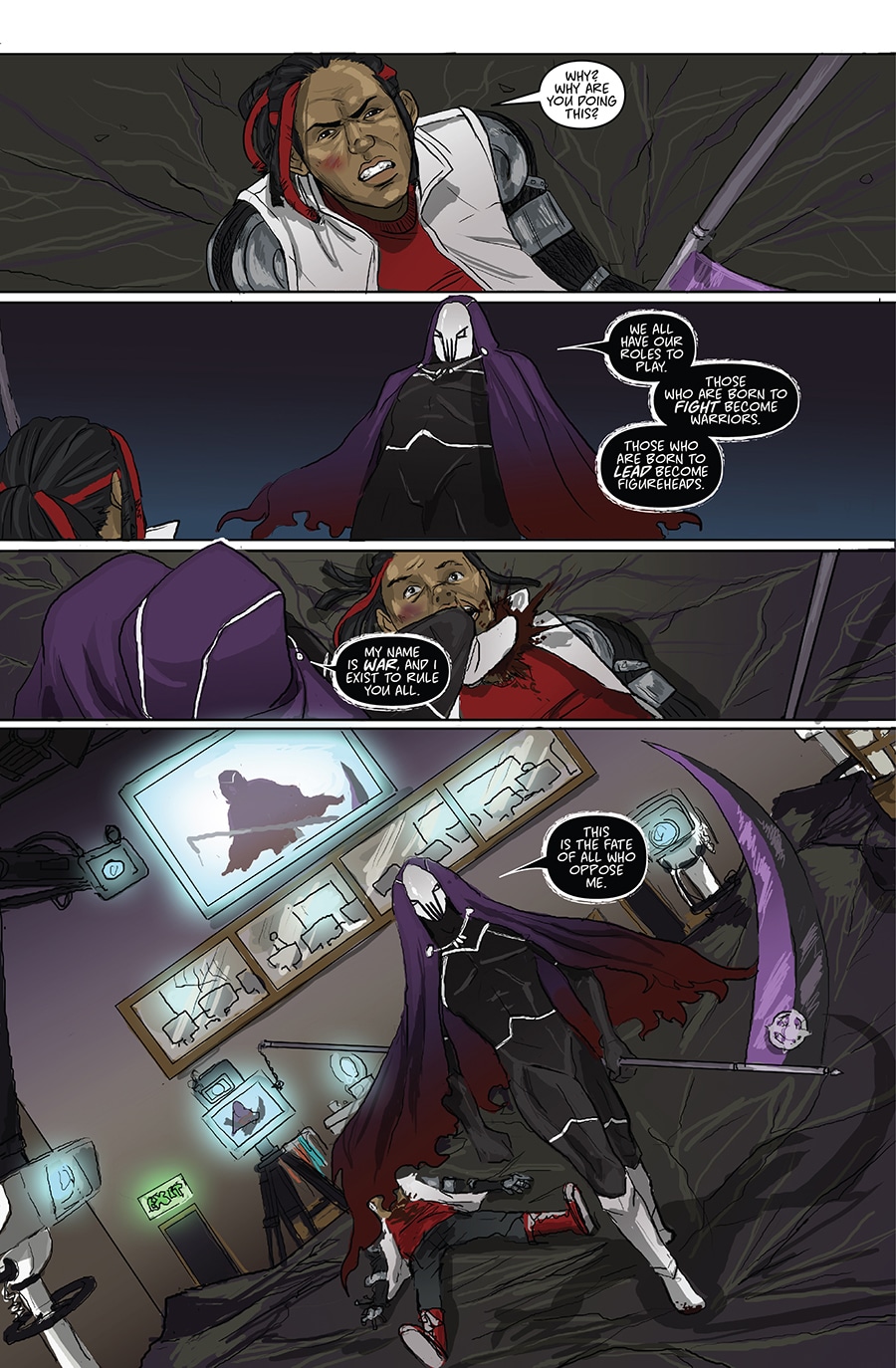 Ah, so the conceit is a bit like Sleepwalker, except the host doesn't want to fall asleep since War is evil. Pretty awesome concept--love how gory it is too. Not nearly enough villain comics out there. Few typos here and there, but this is really promising so far. Kudos!