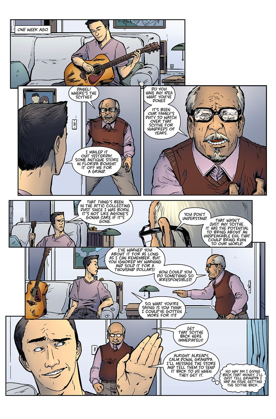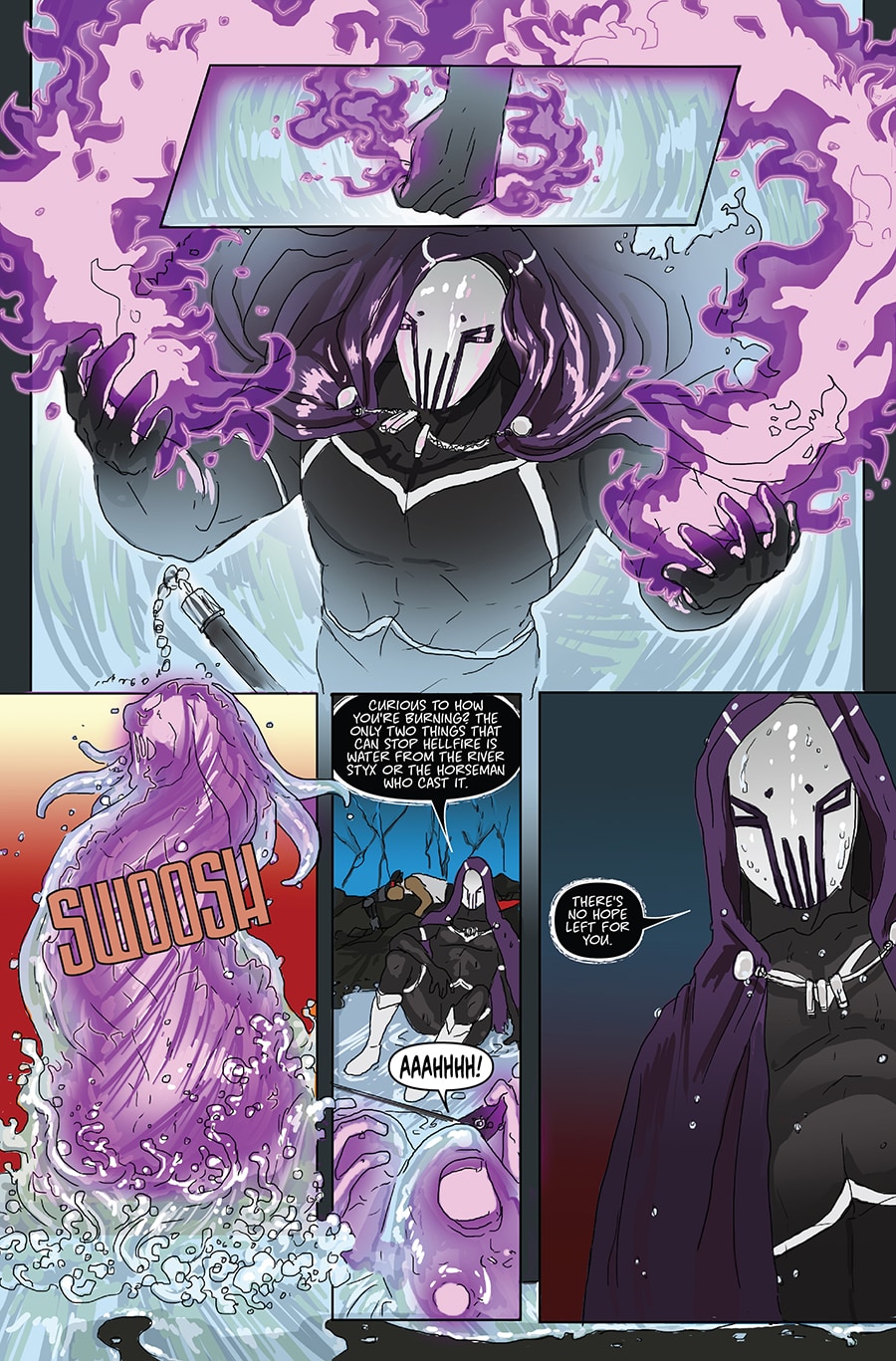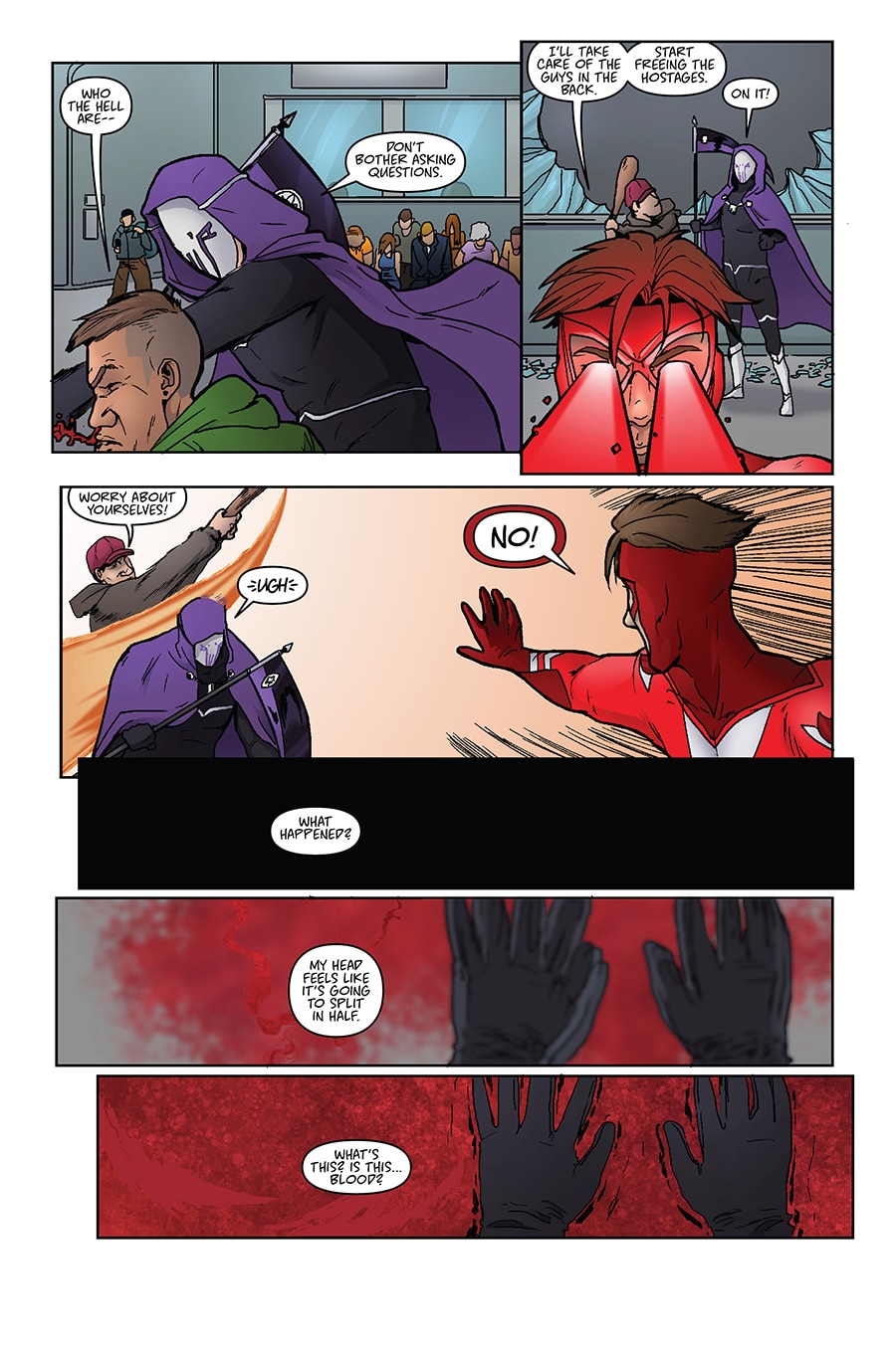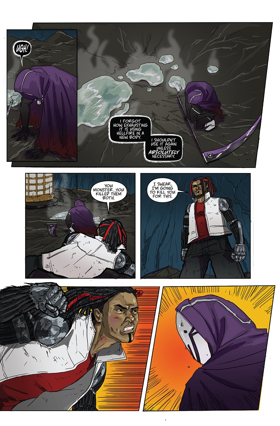 Ah, so the conceit is a bit like Sleepwalker, except the host doesn't want to fall asleep since War is evil. Pretty awesome concept--love how gory it is too. Not nearly enough villain comics out there. Few typos here and there, but this is really promising so far. Kudos!