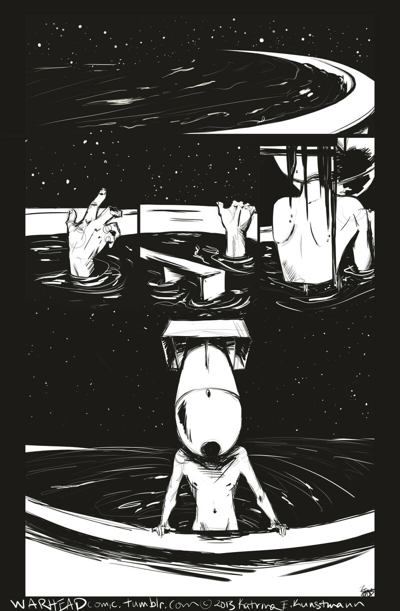 The first page of WARHEAD, drawn up in 2013! Hello! This comic has been around a while, but it was uploading on Tumblr. To combat their very strange adult material policy and to try and reach more readers, we're no uploading to a few other platforms! :>