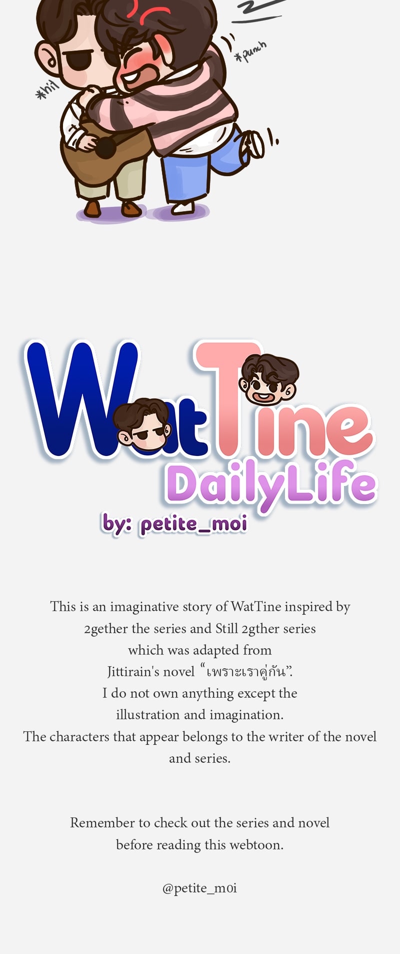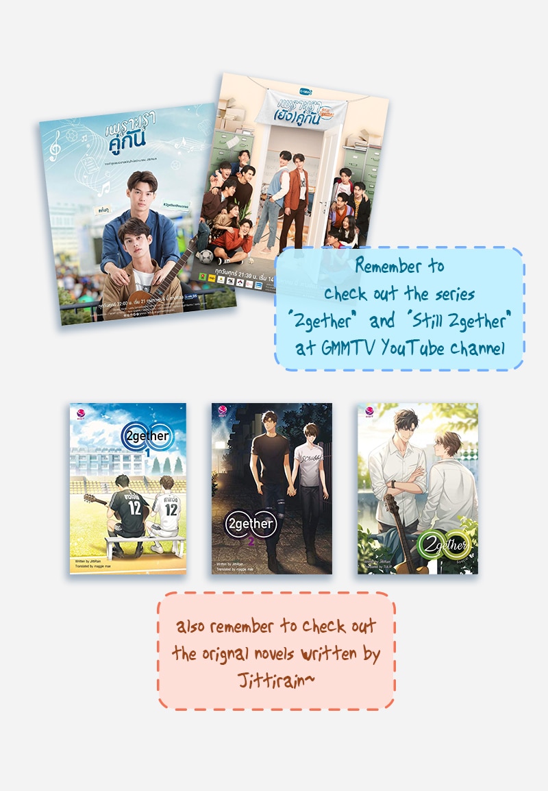 This is an imaginative story of WatTine inspired by 2gether the series and Still 2gther series which was adapted from Jittirain's novel “เพราะเราคู่กัน”.