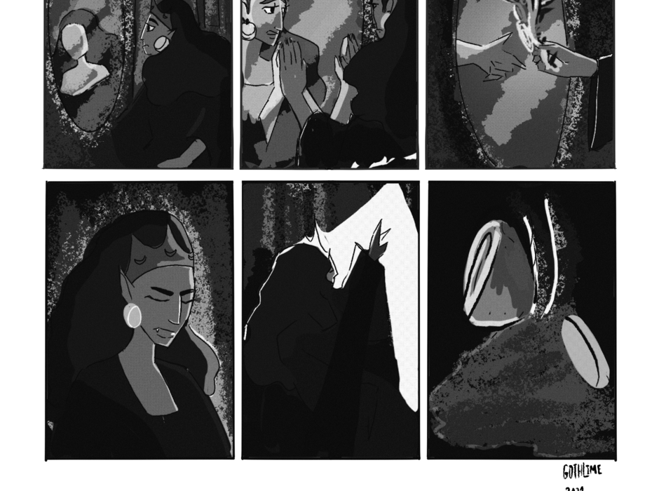 A 9 panel comic about a Vampire and her self reflection. She won't be going to the afterlife but she'll be the beautiful rose here on earth, the ones she created.