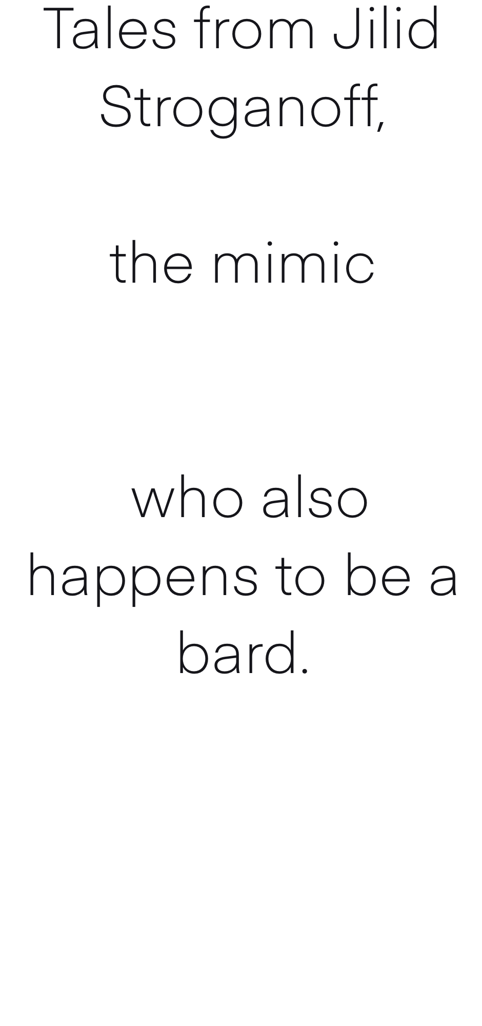 Coming soon.. tales from Jilid stroganoff, a mimic, who is also a bard.