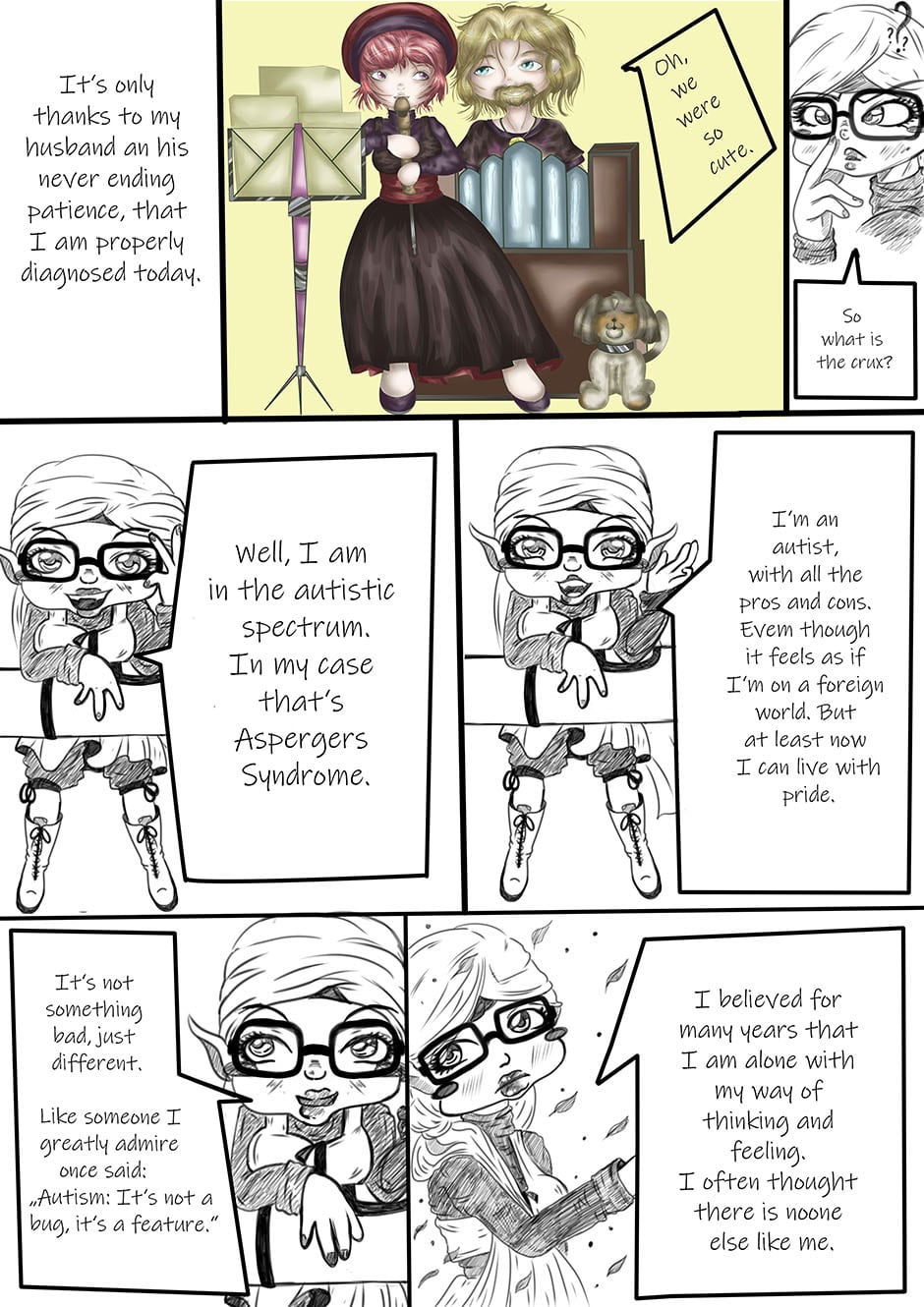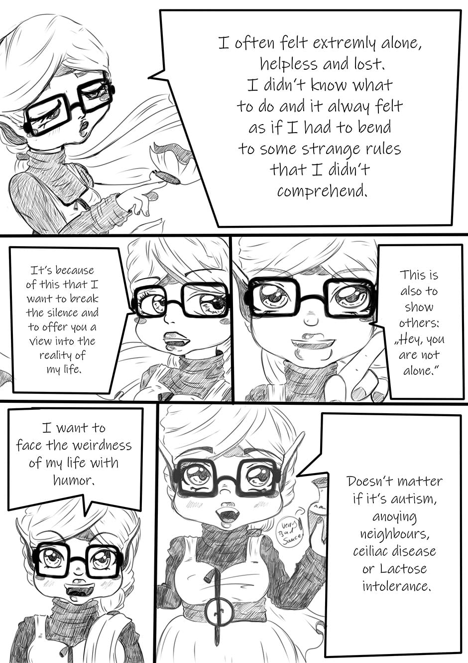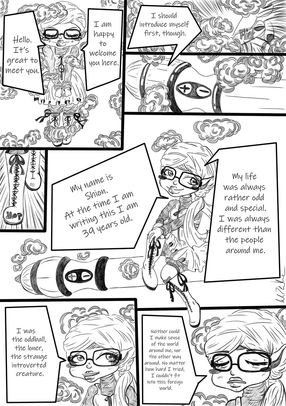 Hello and welcome to the first episode of "Welcome To My Life". Publishing my little Webcomic-Blog about Aspergers-Syndrome and Celiac-Disease was a heart's desire of me for a long time. Starting today I want to publish a new page every 2nd sunday with stories and pictures of the daily weirdness of my life. I hope you ancompany me on this journey. Until then: Thank you and have fun reading, Shion.