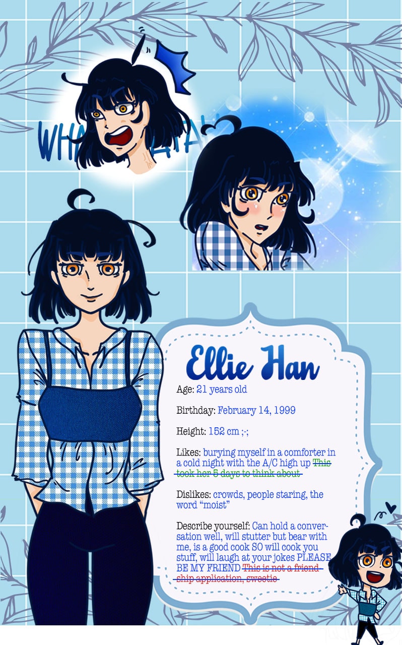 A loner but want to start over and make friends and have an exciting college life?? Then all you need is for that handsome transfer student to fall for you!! Certified by all romance mangas, manhwas, and all kinds, Ellie Han, so IT WILL WORK! It will, it should …. except for that floating green little boy just beside the hottie, it should - ooOOHMYGAHD IT SMILED AT ME?!