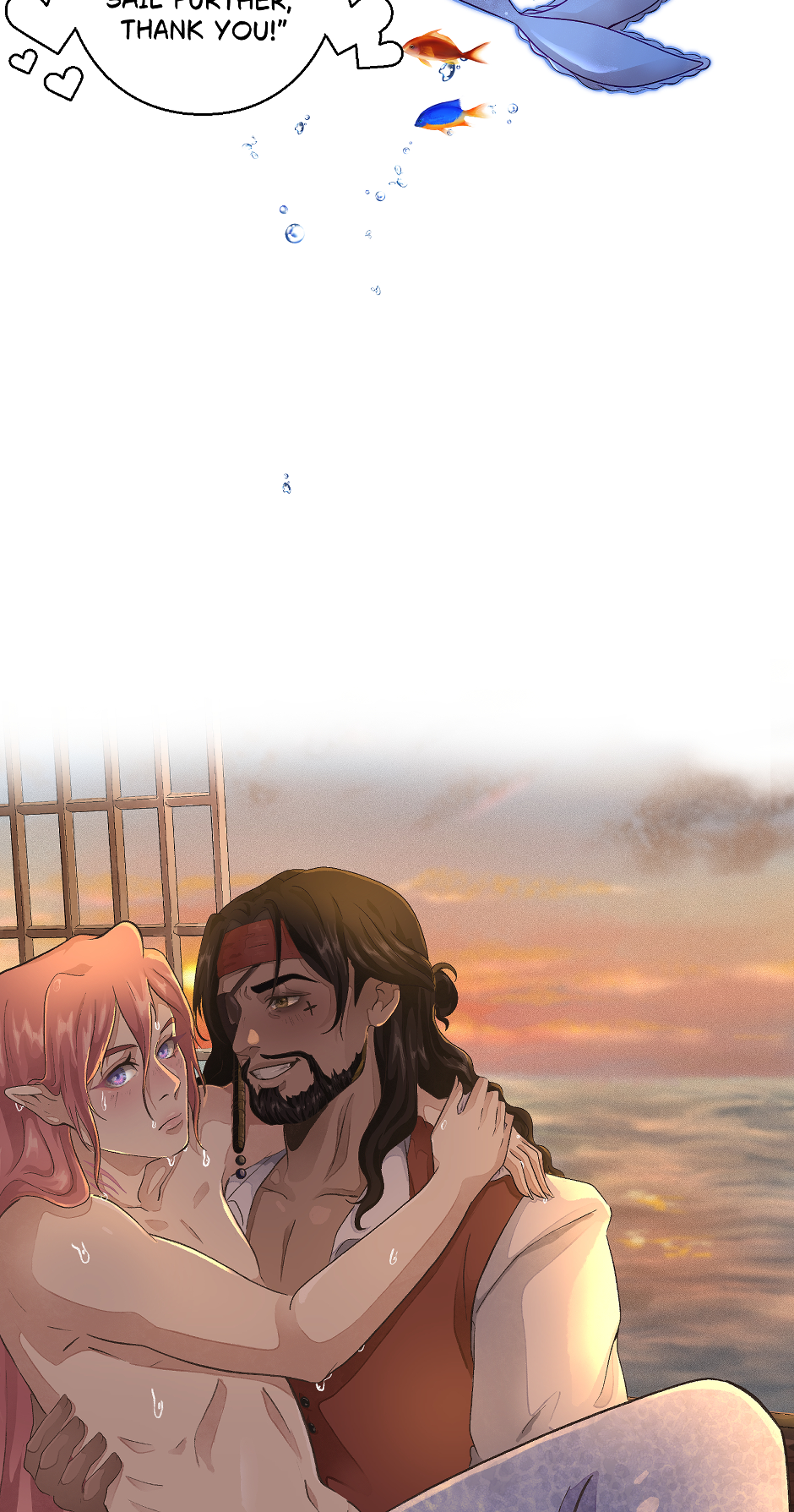 James should never have met Orion. A pirate and a merman, two souls from worlds that should never touch. Yet fate had other plans. Their first meeting was innocent, two boys unaware of how cruel the world could be. The captain’s son freed the trapped creature from his cage, and that moment would haunt his heart for years. When they met again, he knew. Some bonds are written in the tides. Story and Art: Itami_art Translation: dysia_art