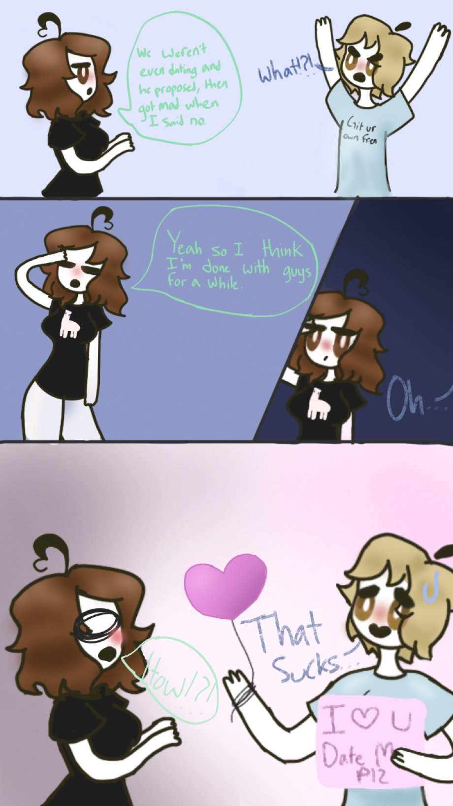 Right after I rejected the guy who proposed to me, I told one of my friends what had happened, and he decided to use that as an opportunity to hit on me...