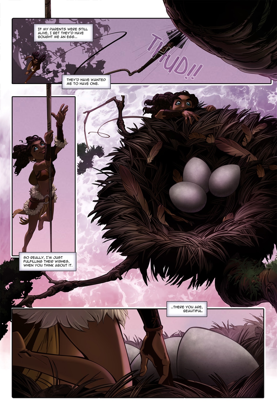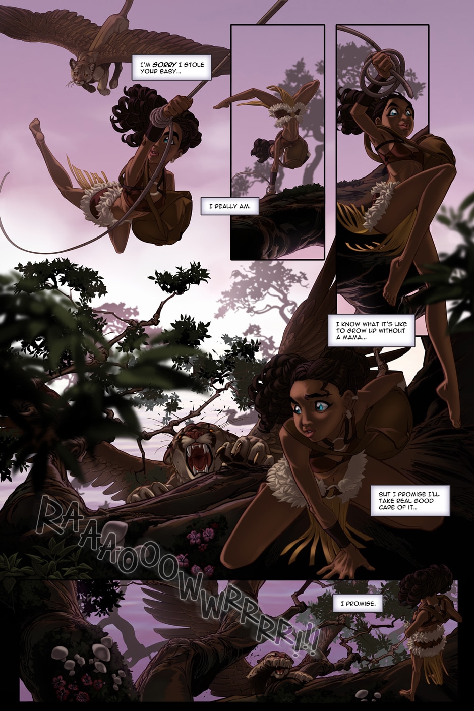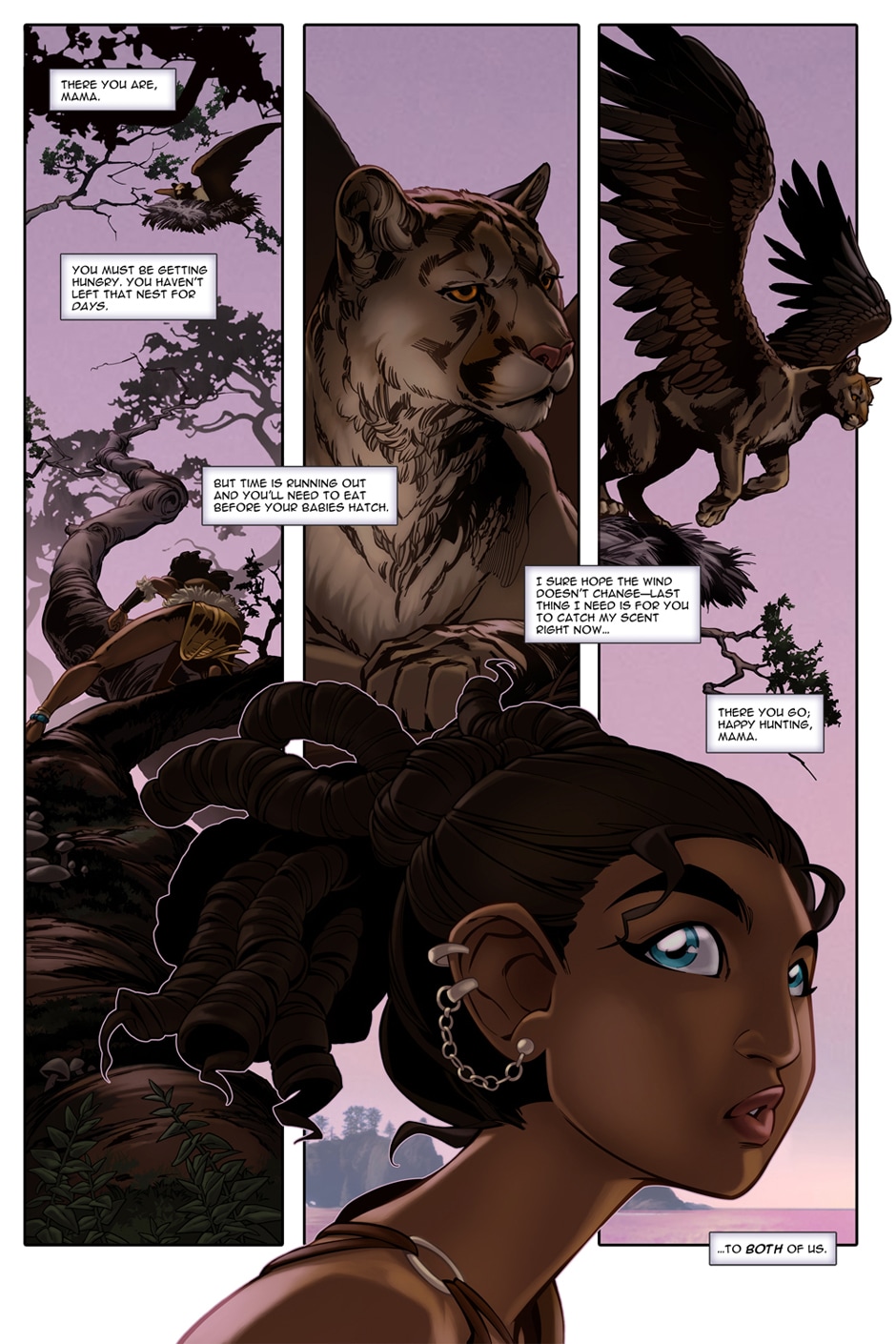 She's a head-strong huntress riding a giant winged cat.