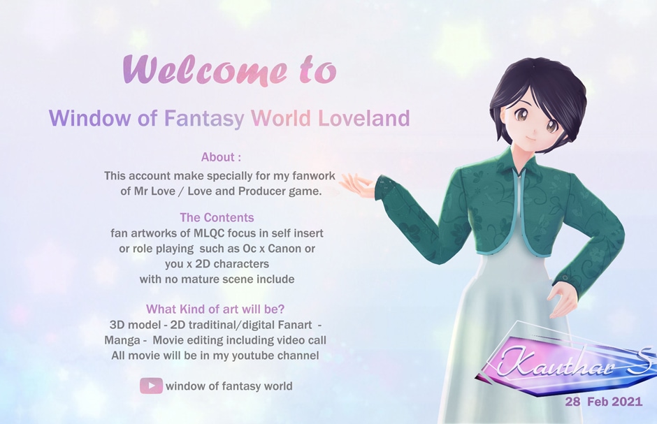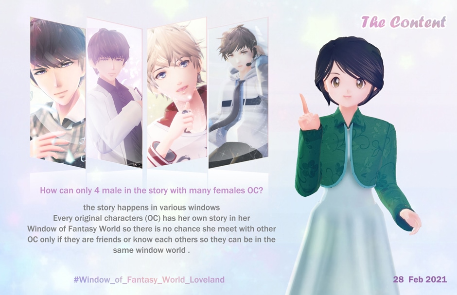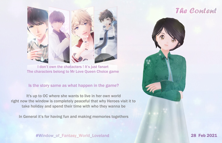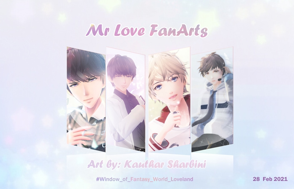 this is will be many fan comic in loveland city the art and story done by fans the main characters from the visual otome game Mr.Love Queen Choice