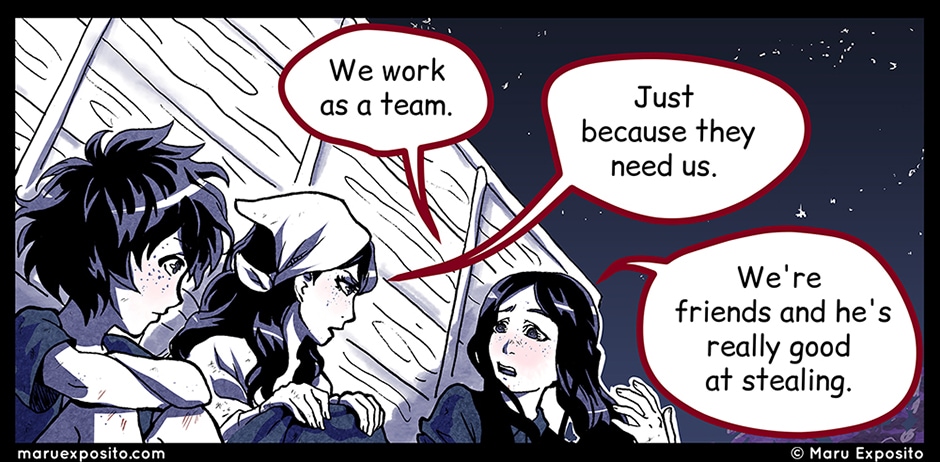 You can use this condensed version as a quick refresher, see how each scene evolves visually and dramatically all at once, go through the comic again faster (without sliding at the app for each panel), etc.