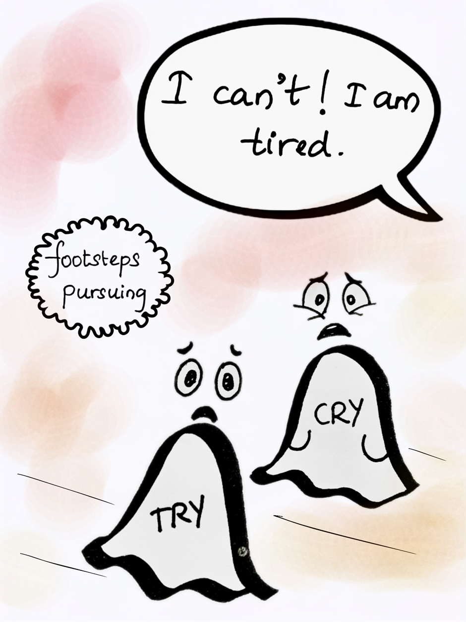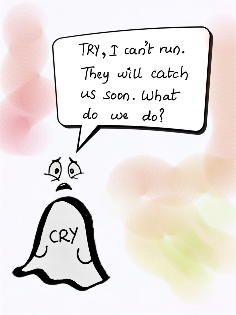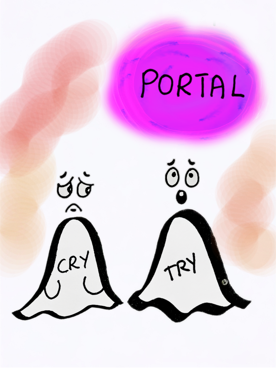 TRY and CRY are running from unknown pursuers. CRY is really scared and CRY has no courage left to fight. But TRY knows that they have only one way. To jump into the unknown portal.
