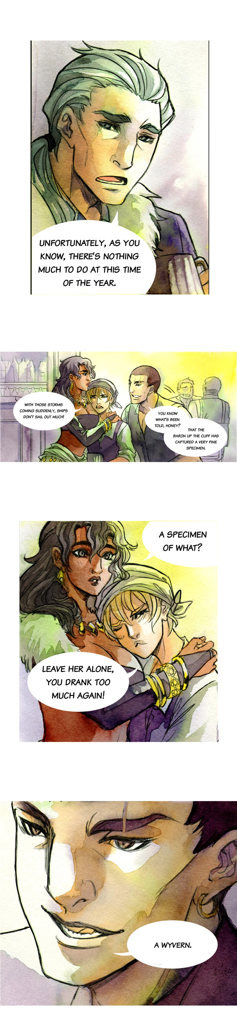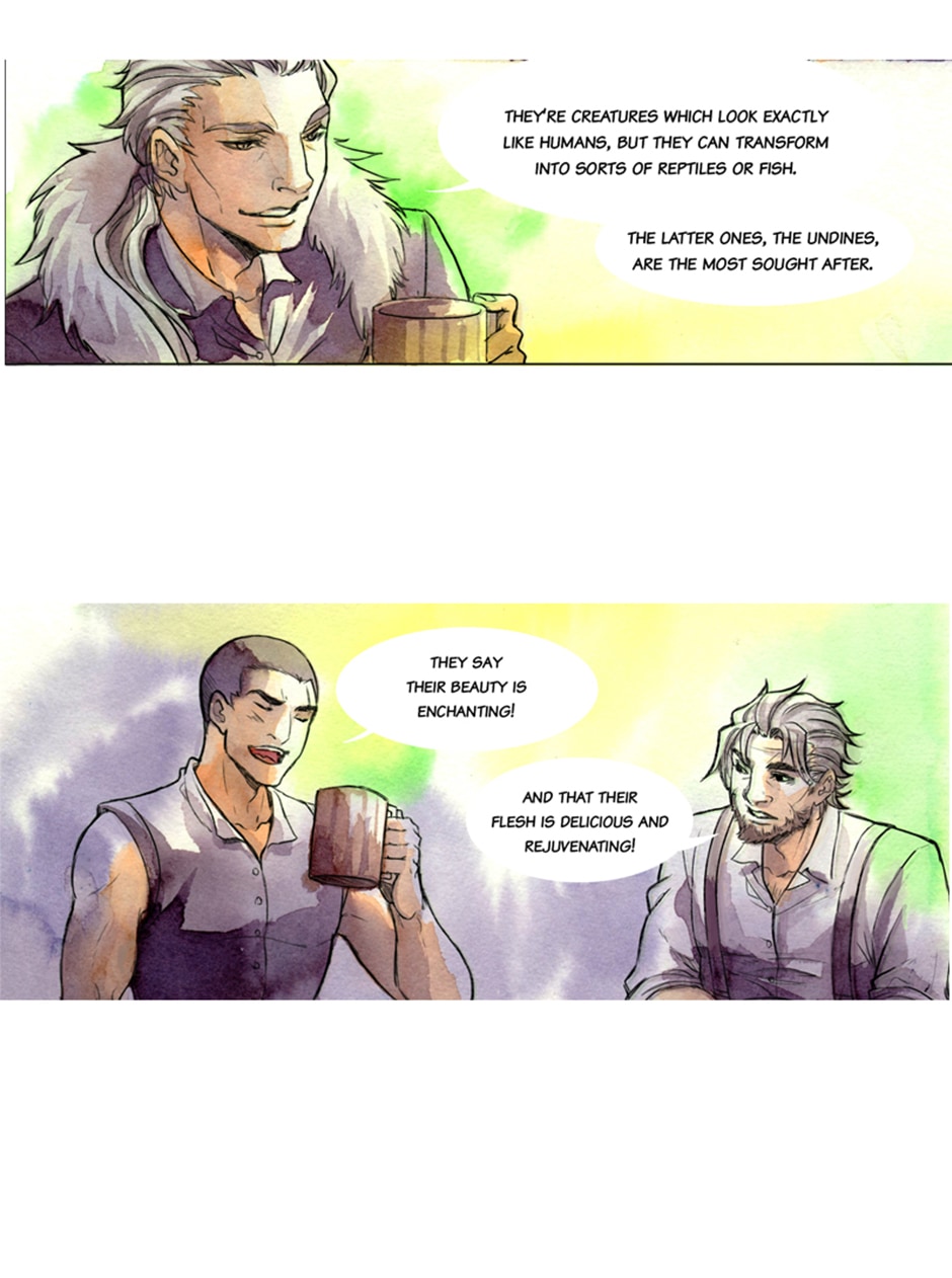 It is said that in the icy territories of Damavykas live among humans fantastic beings. They are wyverns, people who are able to transform into sea creatures, and who hide themselves, fearing that they’d be caught. Wagner, a sailor, is not interested in such absurd fairytales as he is on his way back to the capital of his native country. Follow us on this BL (boy's love) romance, not for the faint of heart! UPDATES EVERY MONDAYS!