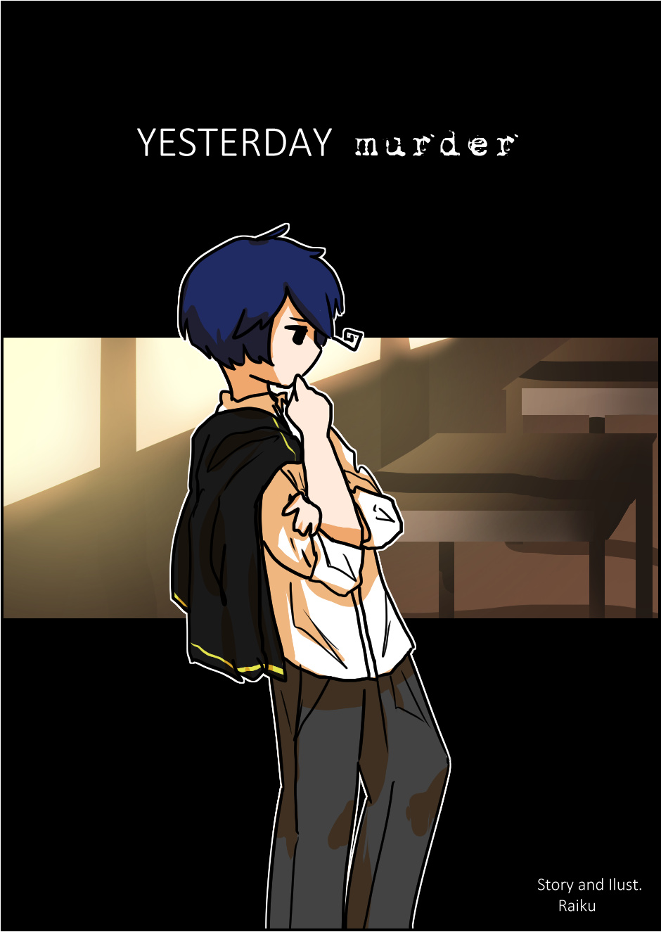 Kuii Kimura is a student at Savia High School. One warm autumn afternoon as he and his friends are walking home, a gunshot rings from the school. They find the dead body of Joy Mitchell.