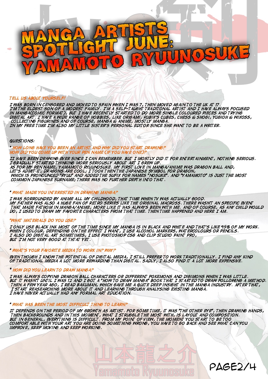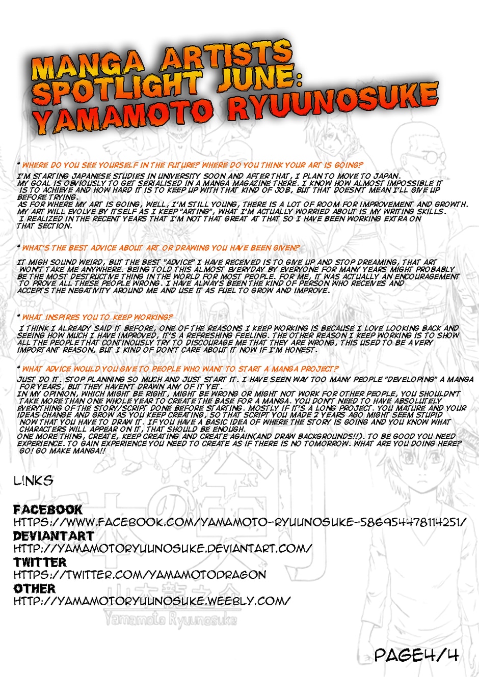 Interview with Manga Artists Facebook Group Yamamoto Ryuunosuke.