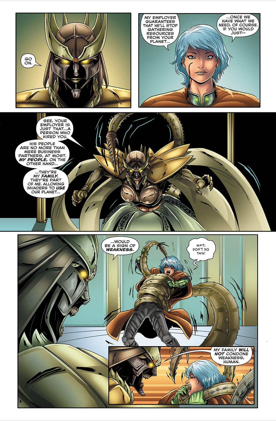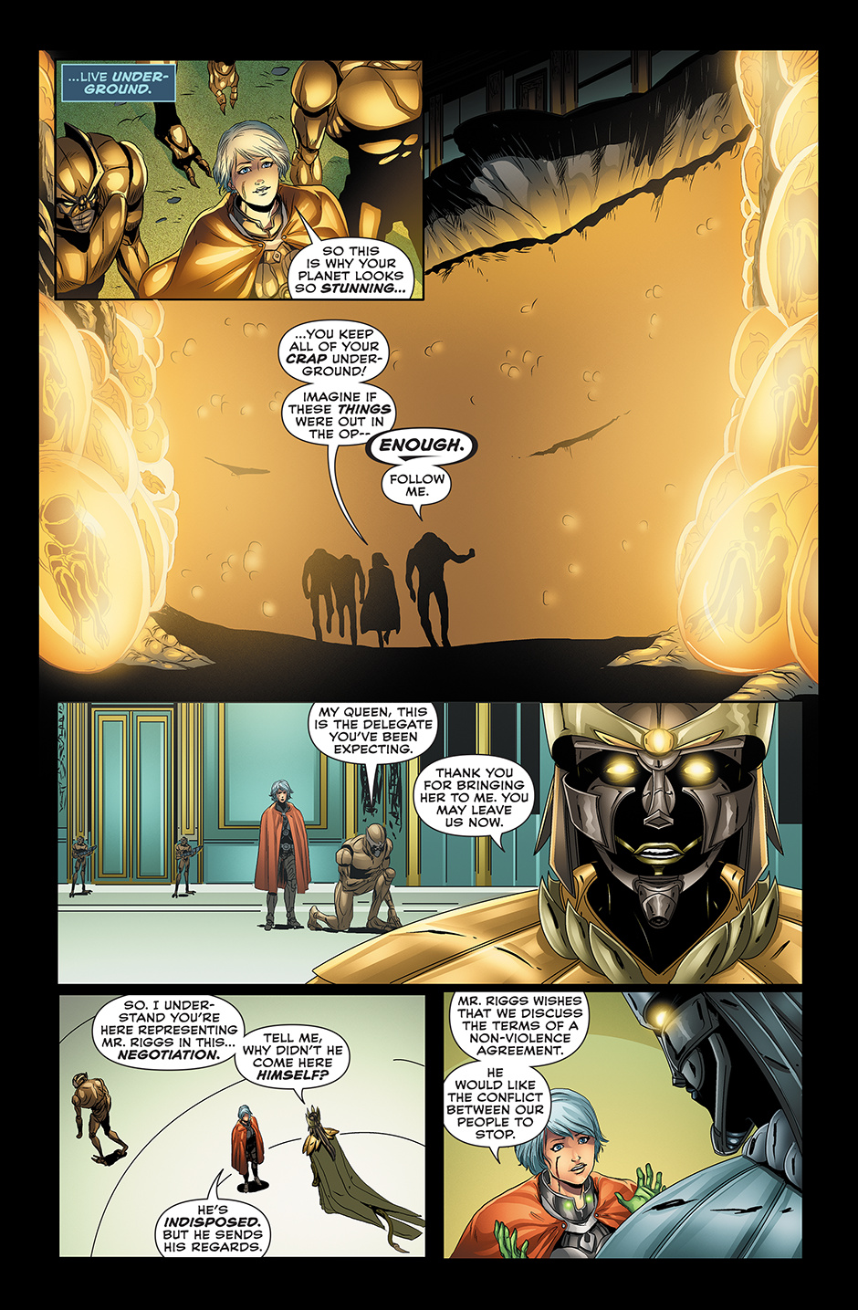 A young mercenary is sent on a mission to negotiate a peace agreement between her employer and an insect-like alien race.