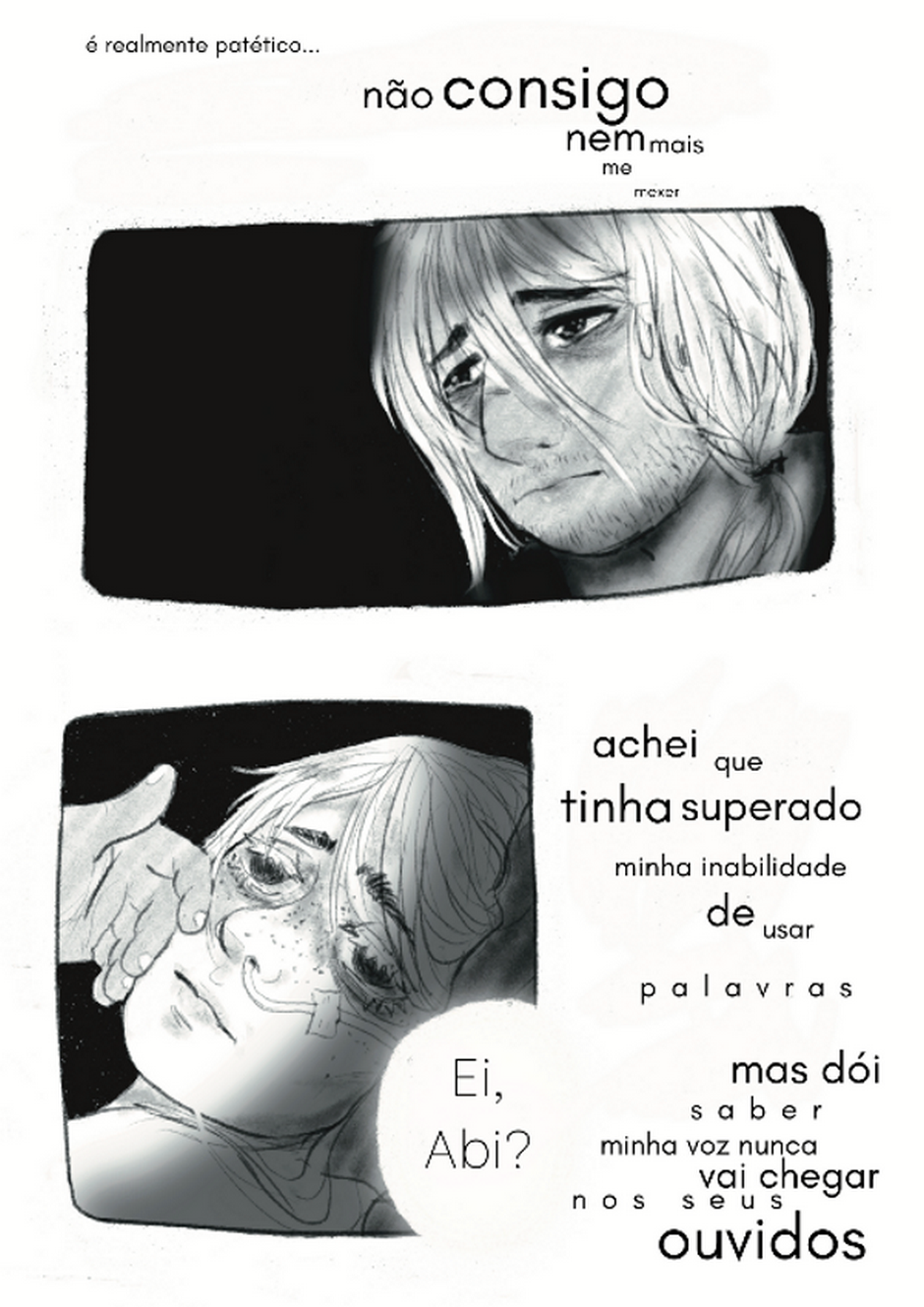 Cara.. eu amei essa primeira comic, assumo que no começo fiquei meio confuso mas depois eu entendi, é realmente triste mas infelizmente como não criei apelo pelos personagens não fiquei tão motivado, mas a forma do quadrinho é tão incrível e os desenhos são outra maravilha, ansioso pro próximo capítulo