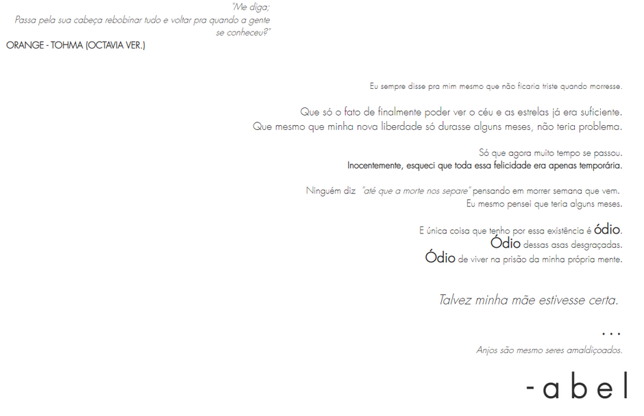 Abel e Cecil sempre souberam que não teriam tanto tempo juntos, afinal, anjos não foram feitos para viver tanto quanto humanos. Mas talvez tenham subestimando quão difícil despedidas podem ser.