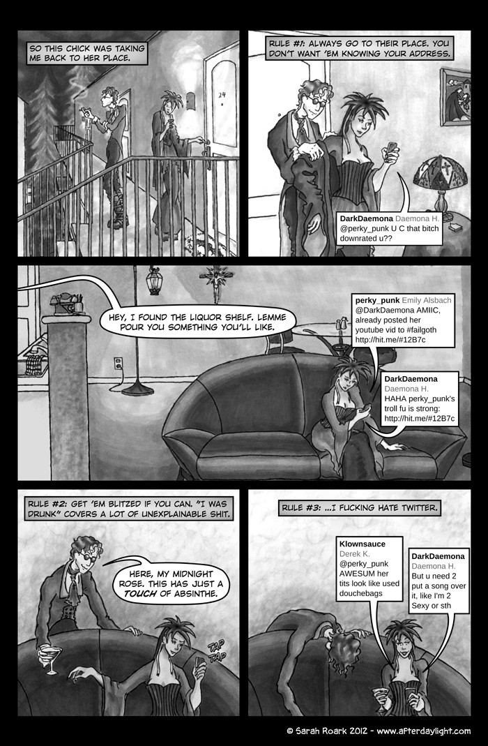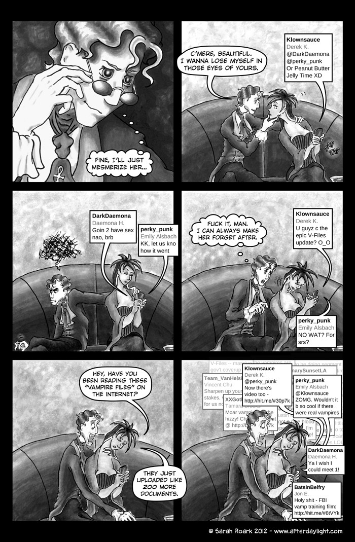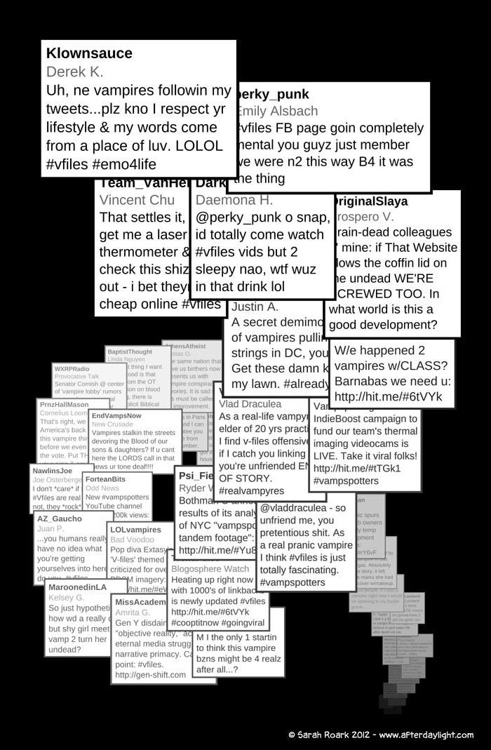 What's Daylight? That's what the vampires call it when humans find out about them en masse. (Which gives you some idea of their feelings on the subject.) And what happens when Daylight hits vampires? Well, chaos, politics and snark, for sure...a little romance...a little slice-of-unlife...and God knows what else. Read along and find out!