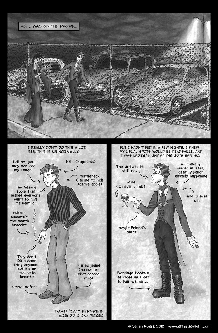 In which we meet our vampire hero, David "Cat" Bernstein -- who is NOT having the best hunting night ever, btw -- and witness his first personal moment of Daylight.