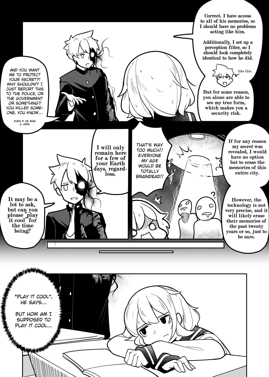 I really like this story. It was funny. I never expected that it took time to absorb memories of the body the alien took over.