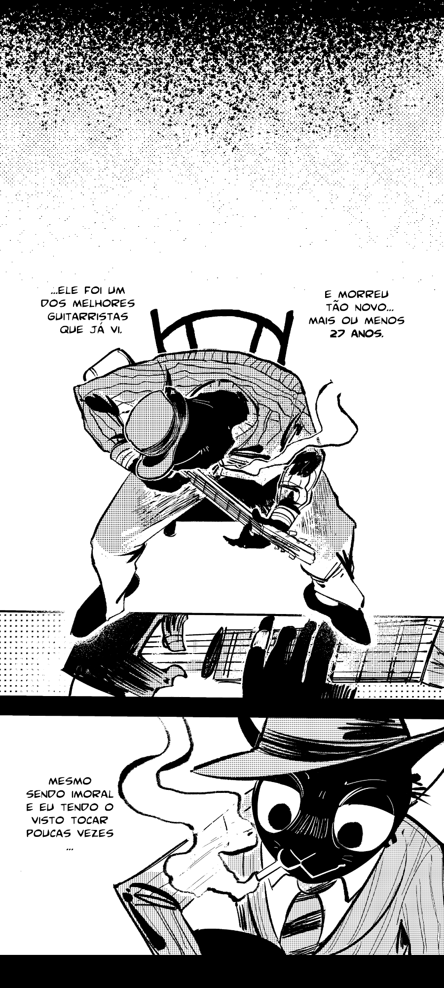 Precisei criar a conta. Me senti na obrigação de comentar e vou compartilhar essa obra: aqui, destaco especialmente a delicadeza do traço, o movimento, a organicidade mesmo que com traços rabiscados. Possui muita cor apesar de tudo. O preto se destaca muito bem na obra. O final, e falo do final porque falo do desenho, emociona.